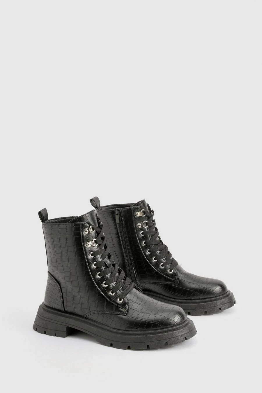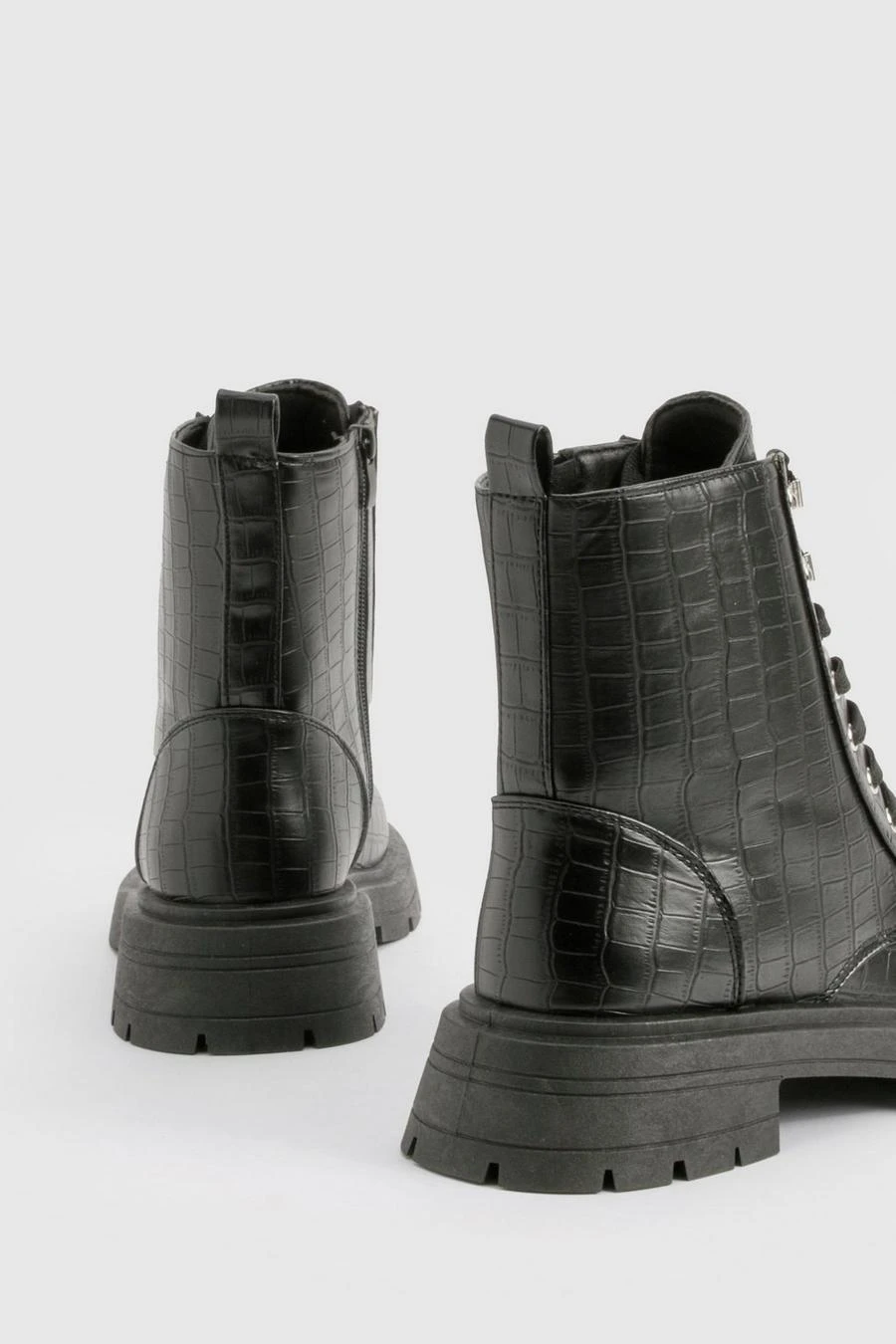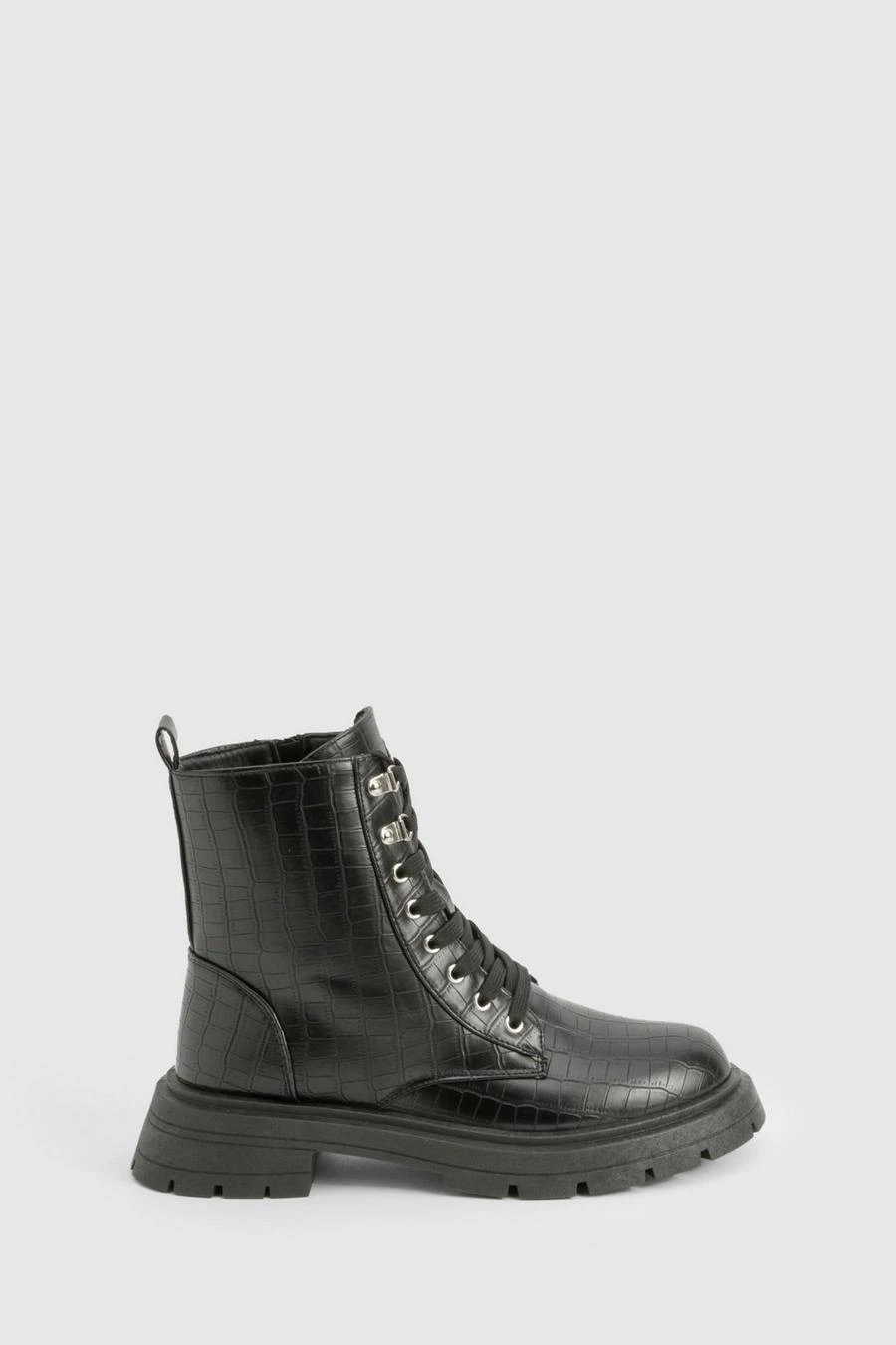 BOOHOO Chunky Lace Up Croc Hiker Boots