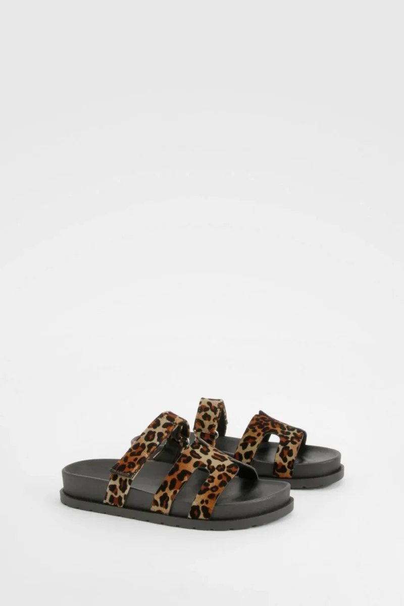BOOHOO Chunky Leopard Cut Out Strappy Sandal