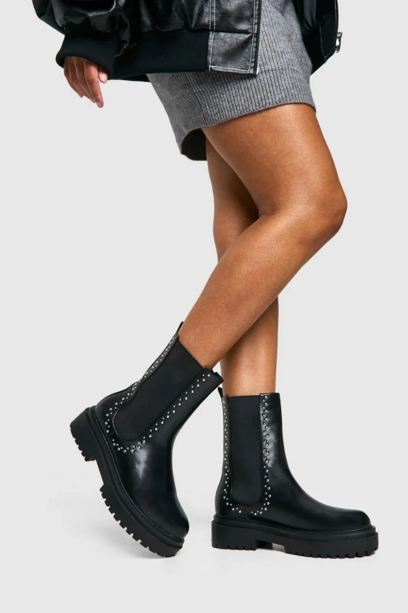 BOOHOO Chunky Stud Detail Chelsea Boots
