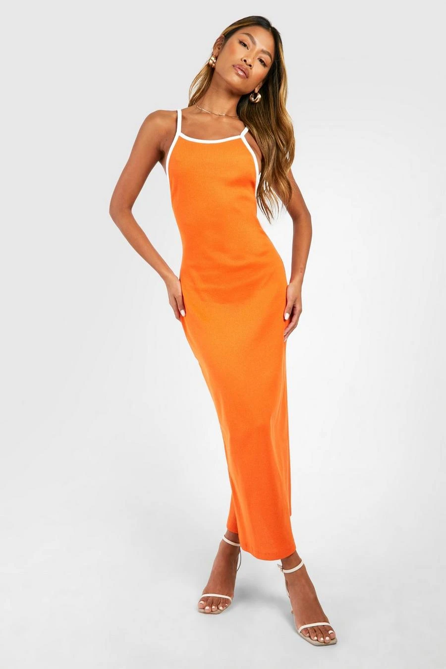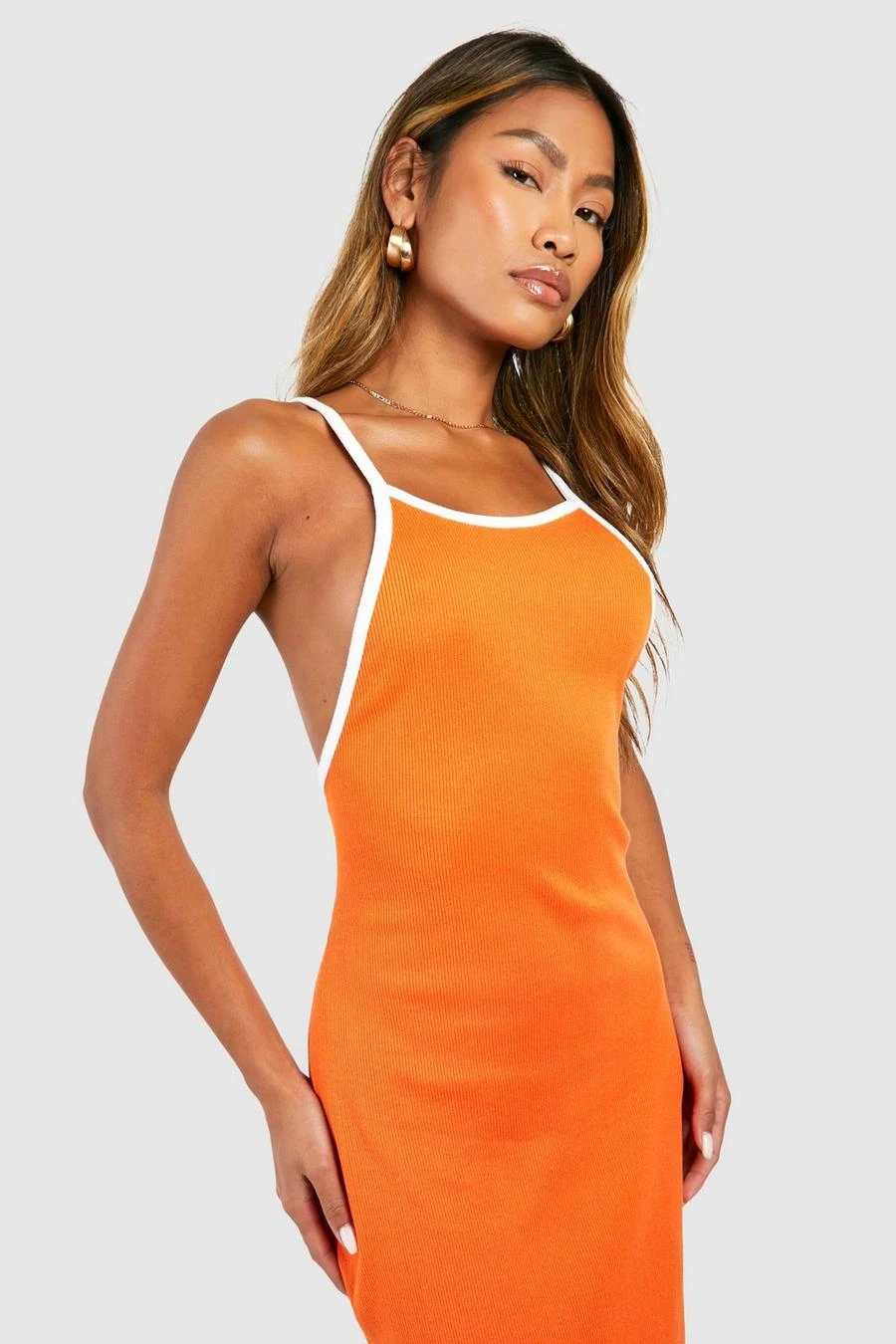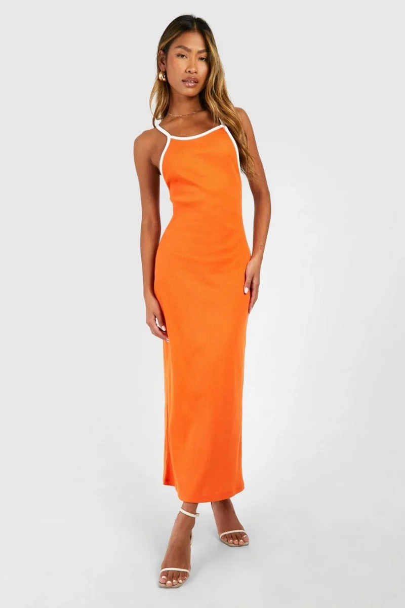 BOOHOO Contrast Binding Low Scoop Racer Midaxi Dress