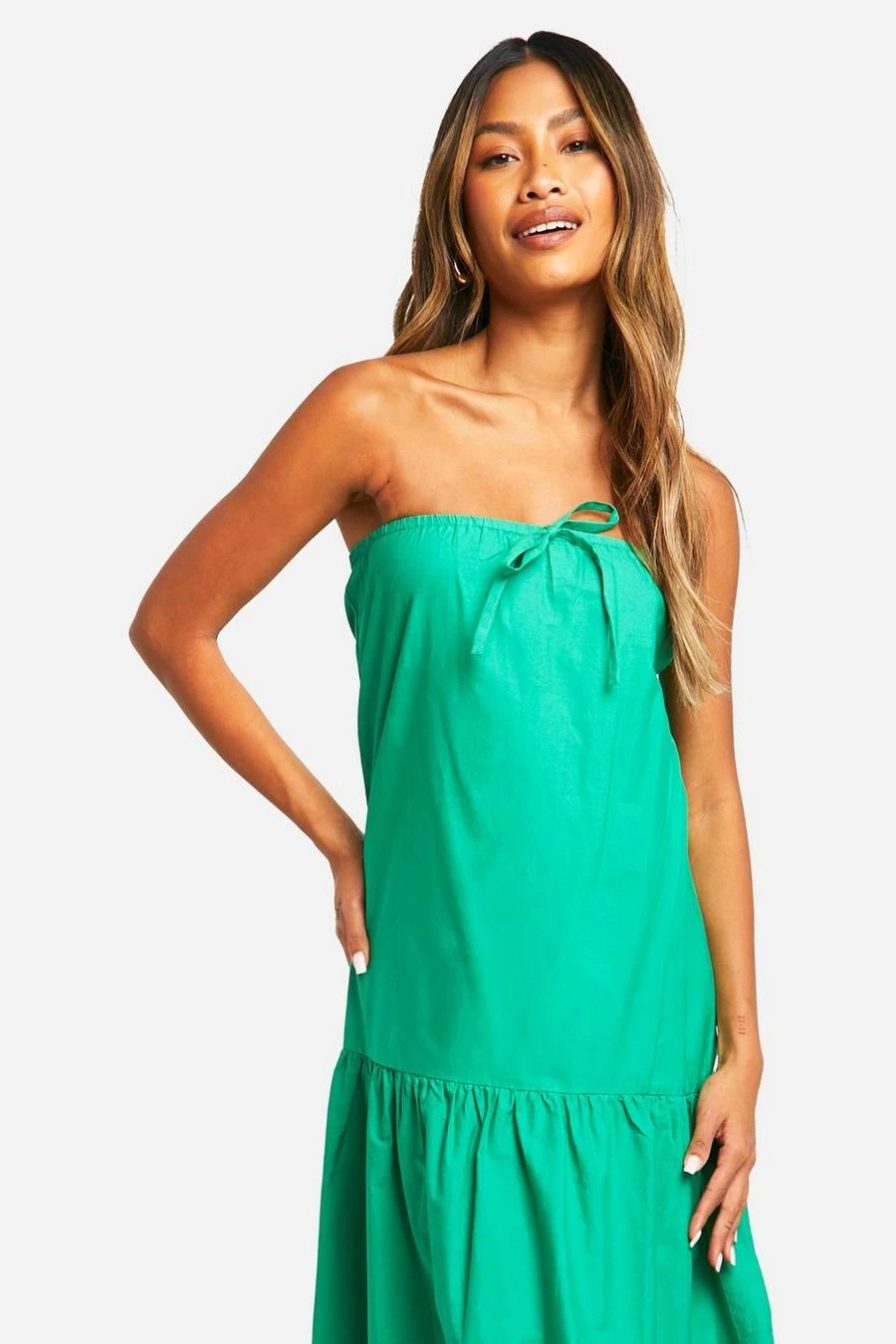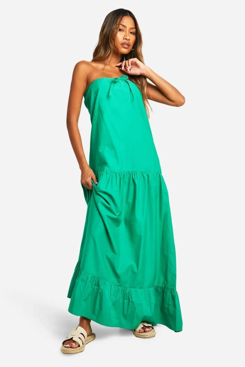 BOOHOO Cotton Poplin Bandeau Volume Maxi Dress
