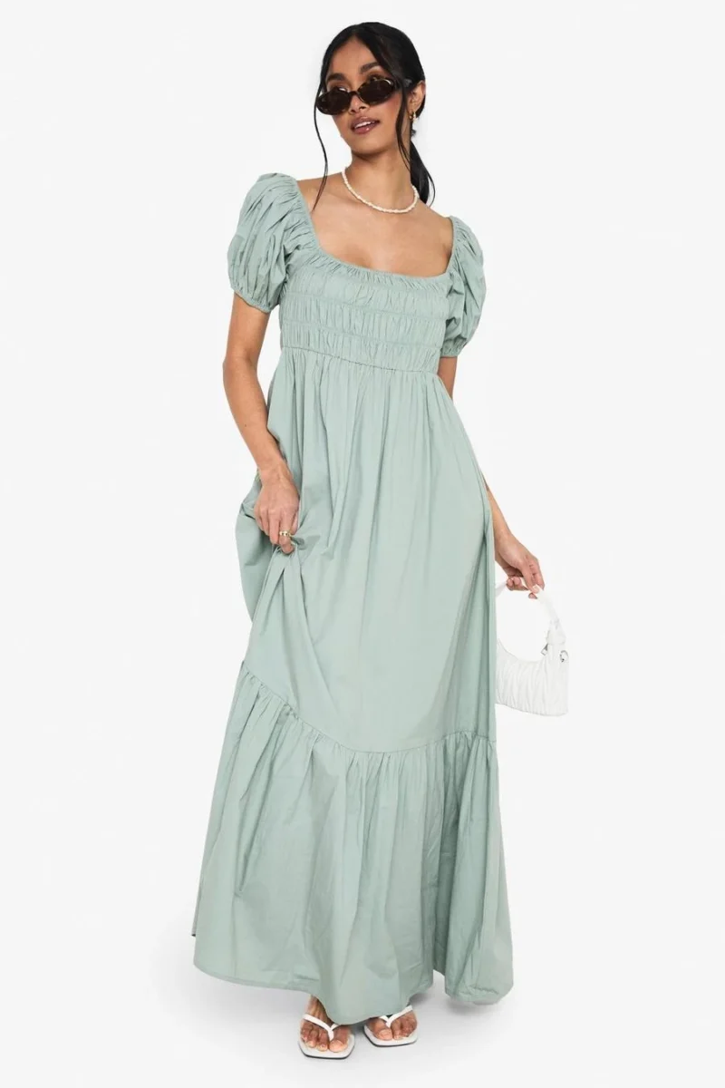BOOHOO Cotton Poplin Puff Sleeve Maxi Dress