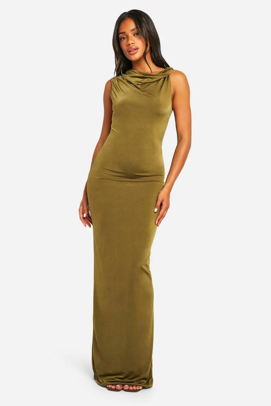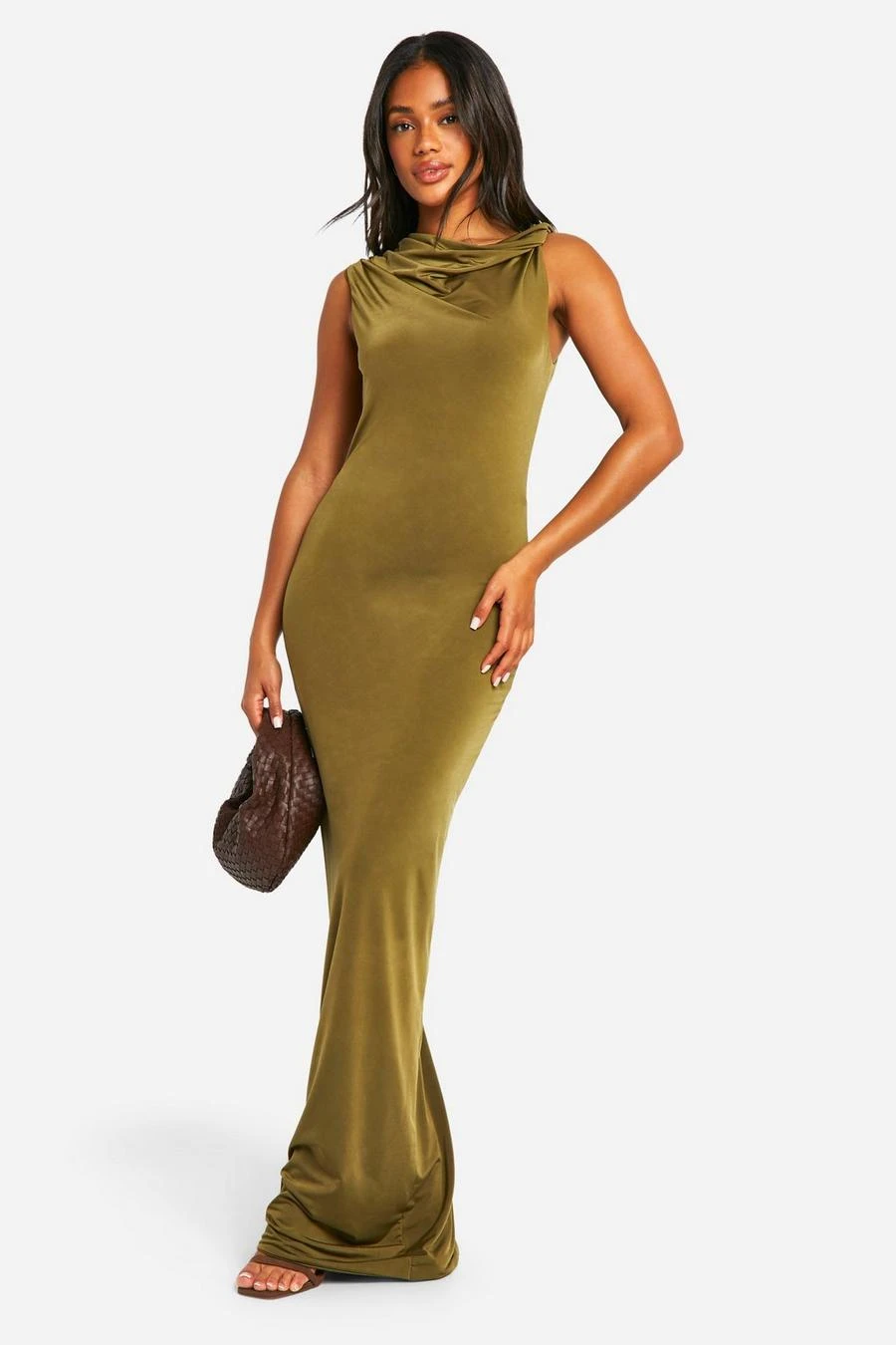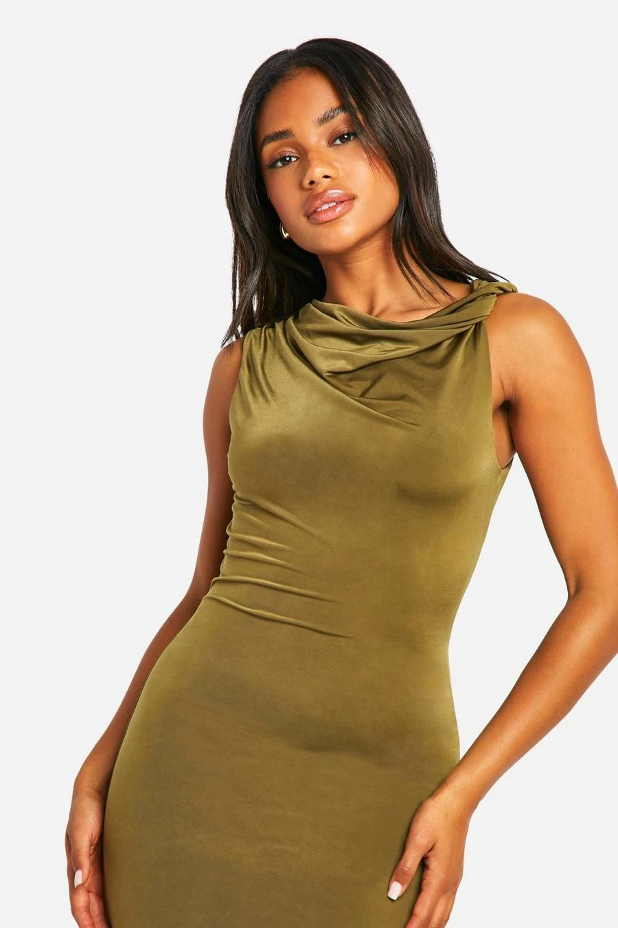 BOOHOO Cowl Neck Twist Detail Slinky Maxi Dress
