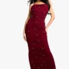 BOOHOO Cowl Ruched Metallic Foil Rib Maxi Dress