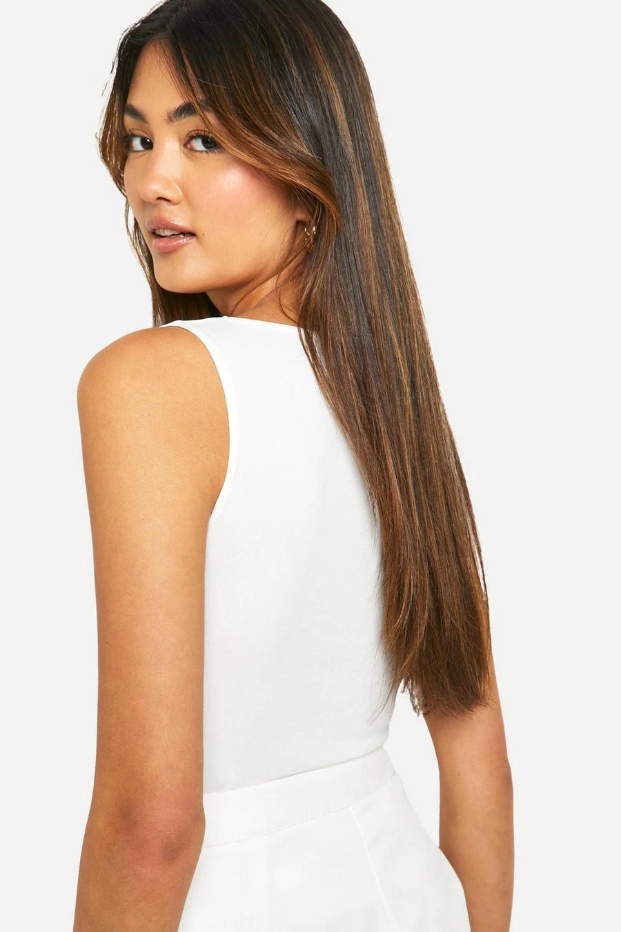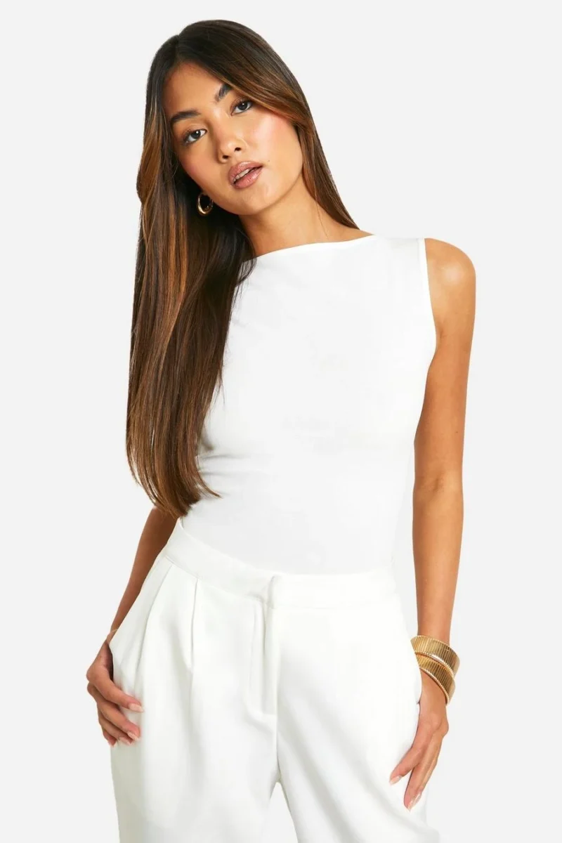 BOOHOO Crepe Slash Neck Sleeveless Blouse