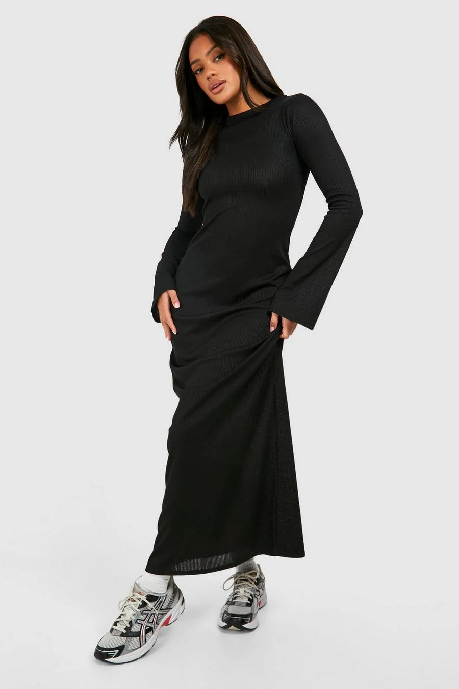 BOOHOO Crew Neck Rib Flared Sleeve Maxi Dress