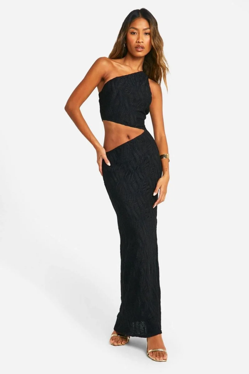 BOOHOO Crinkle Textured One Shoulder Maxi Dress