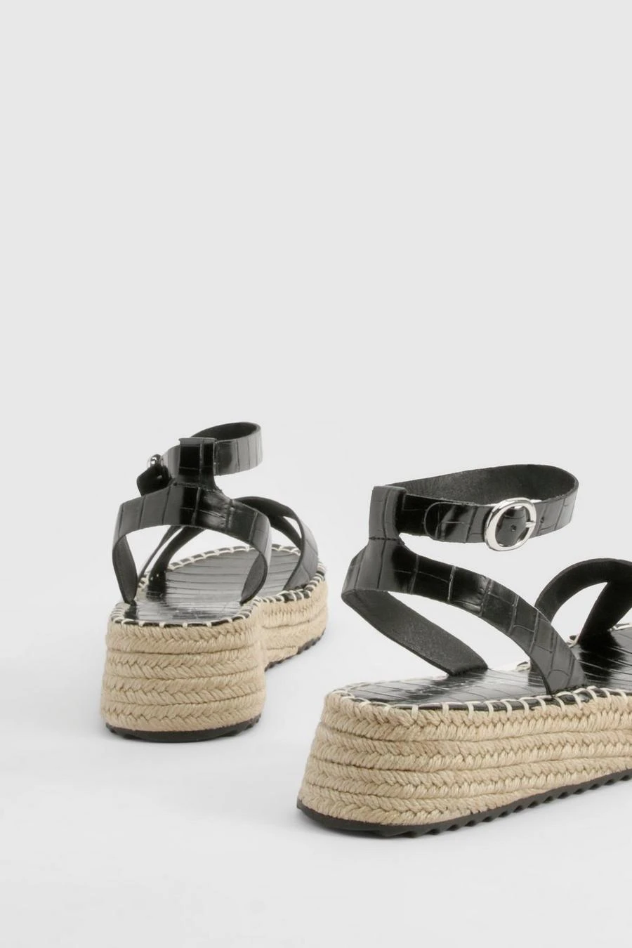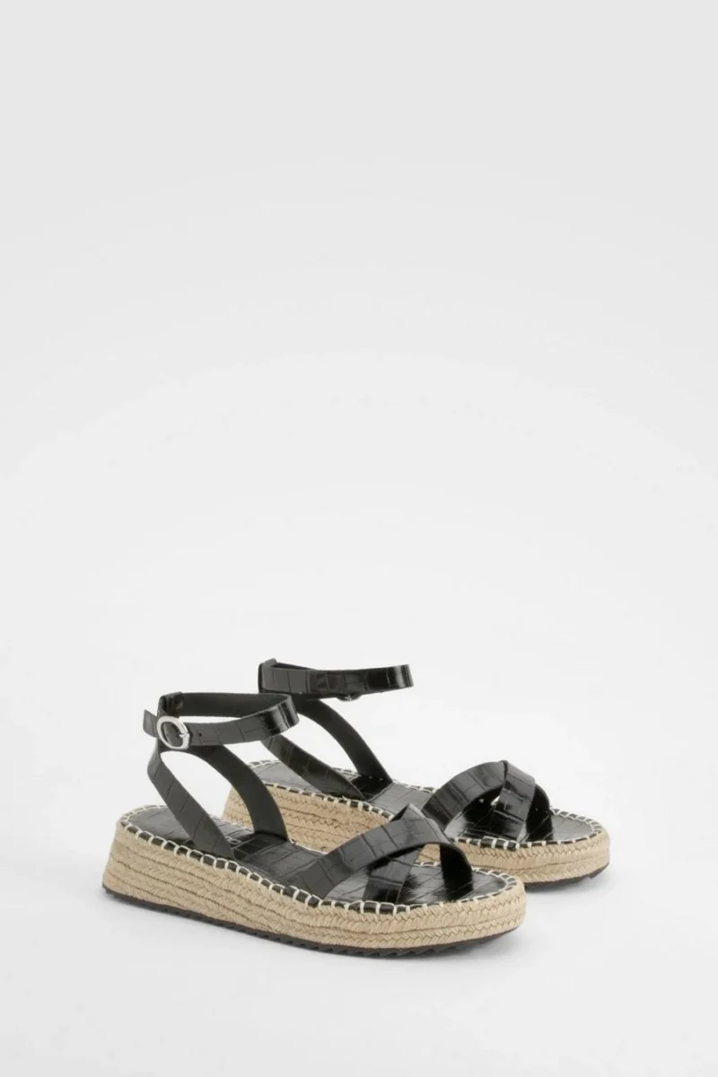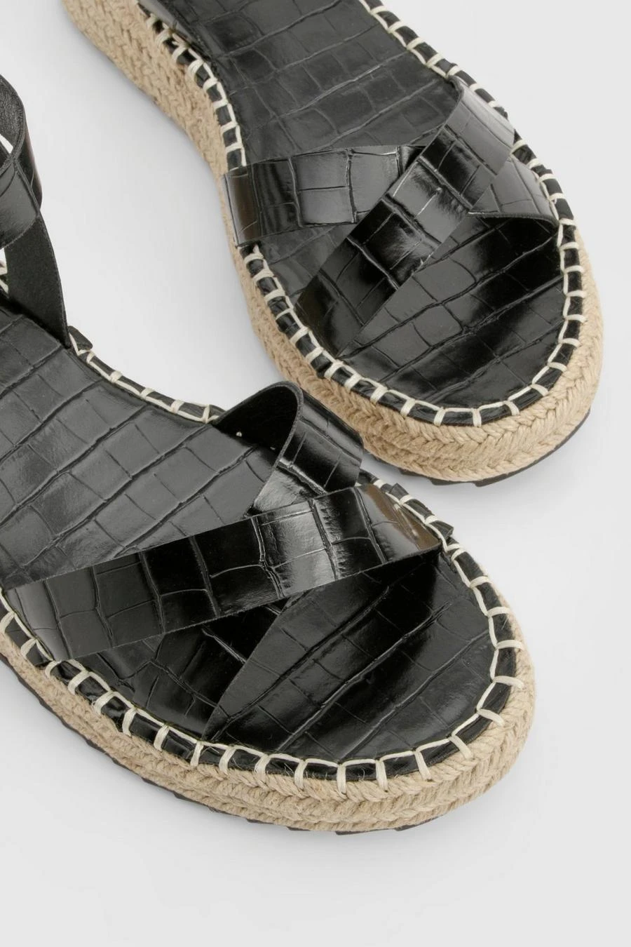 BOOHOO Croc Crossover Flatform Sandals