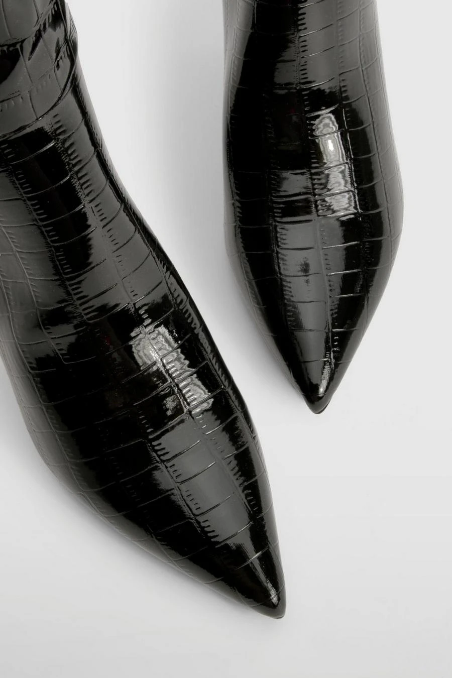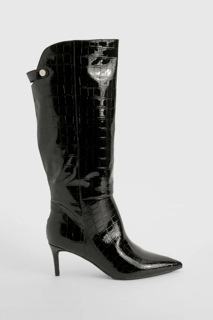BOOHOO Croc Curved Stiletto Knee High Boots