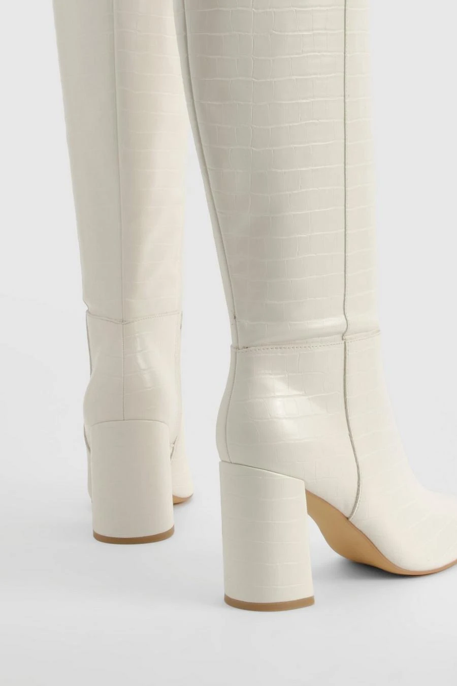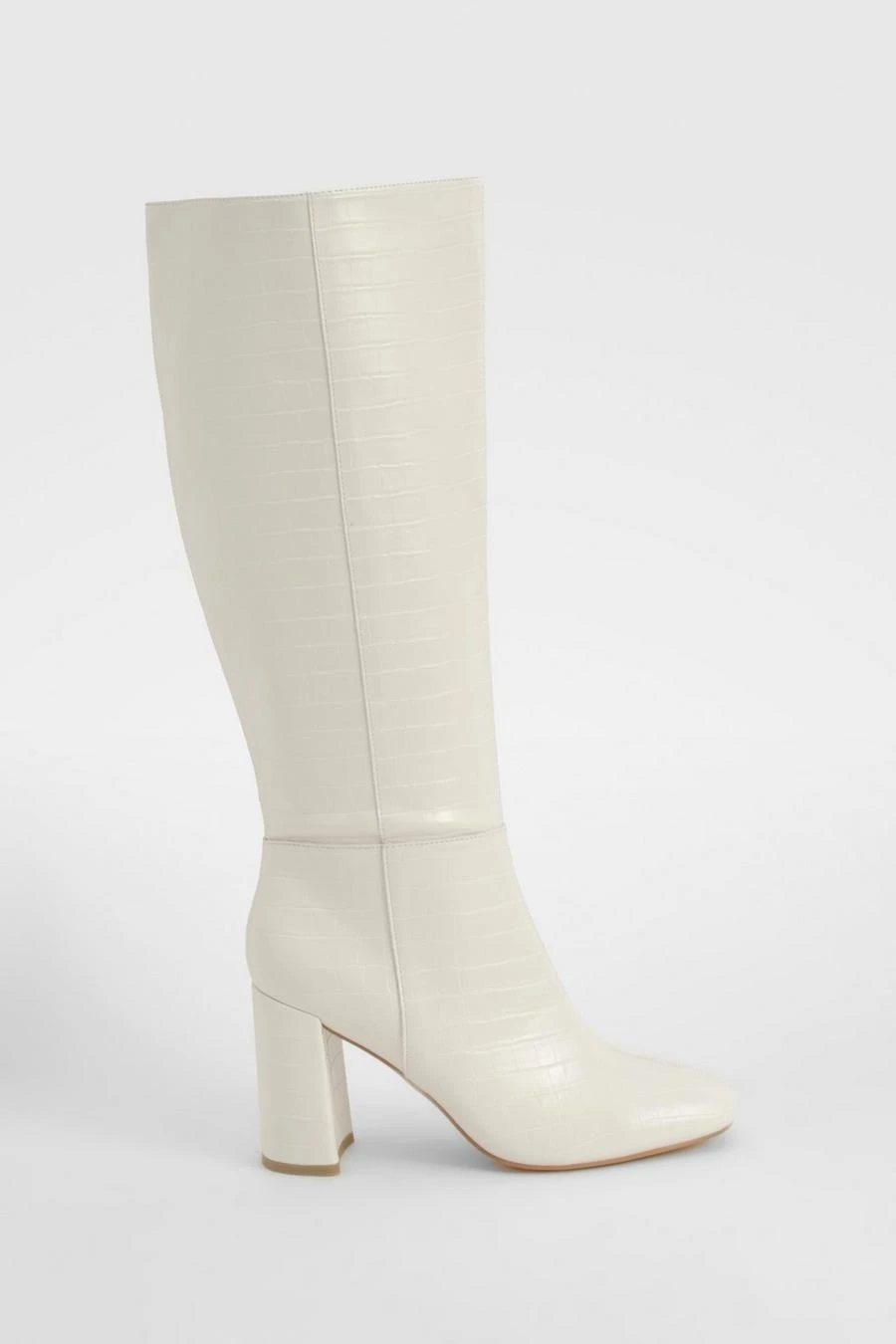 BOOHOO Croc Heeled Knee High Boot
