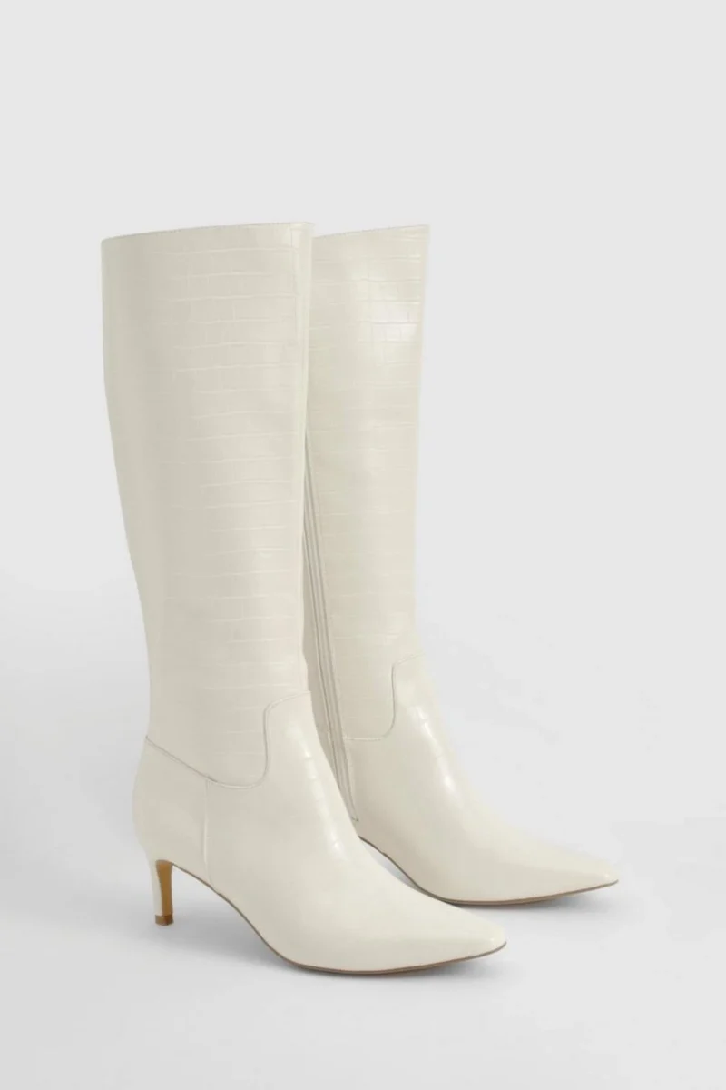 BOOHOO Croc Low Heel Pointed Knee High Boots