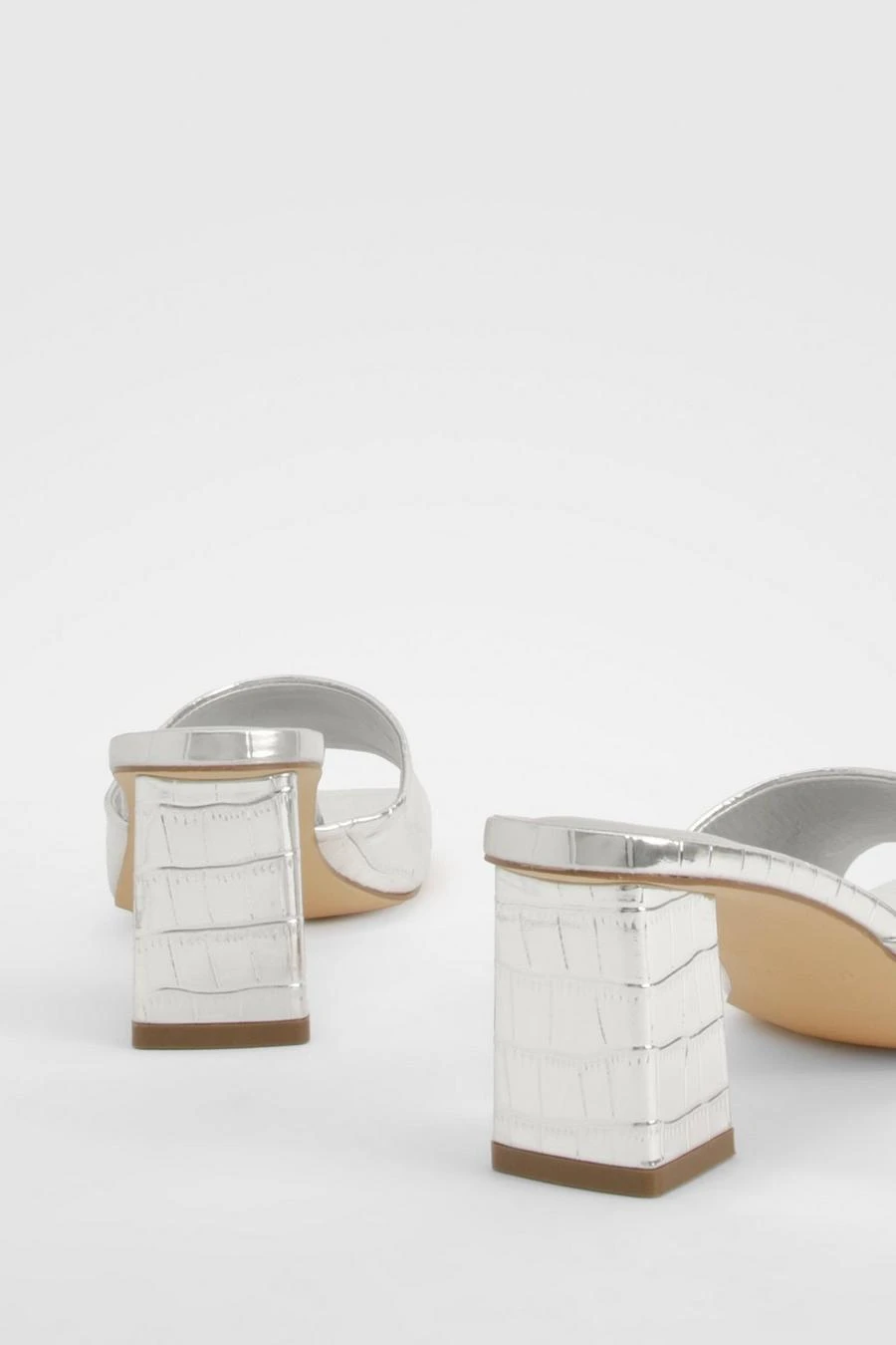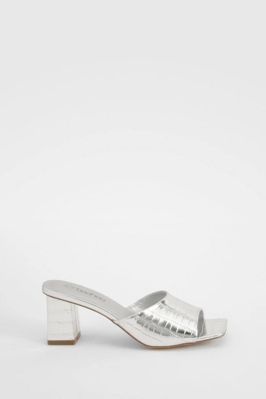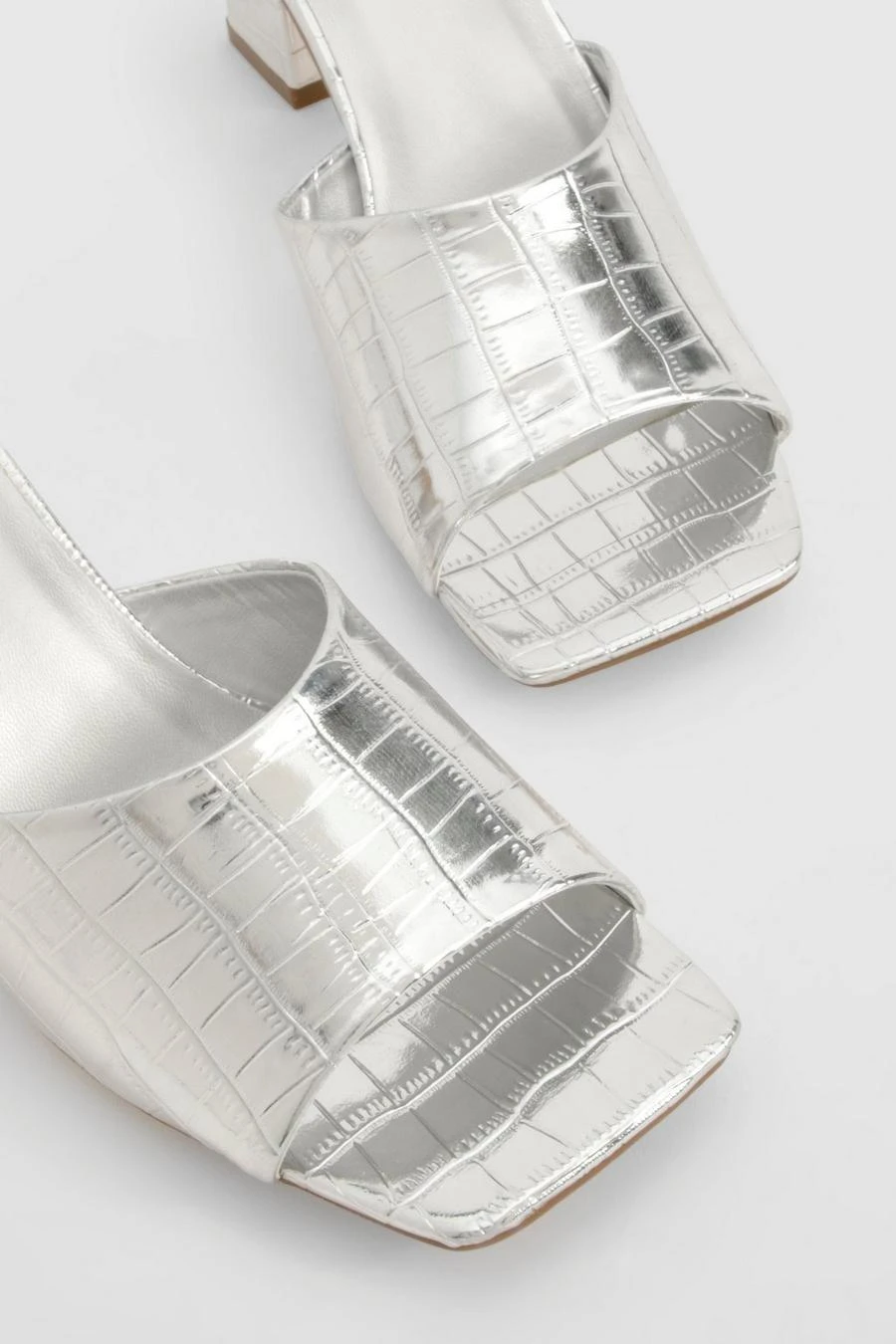 BOOHOO Croc Metallic Low Block Heeled Mule