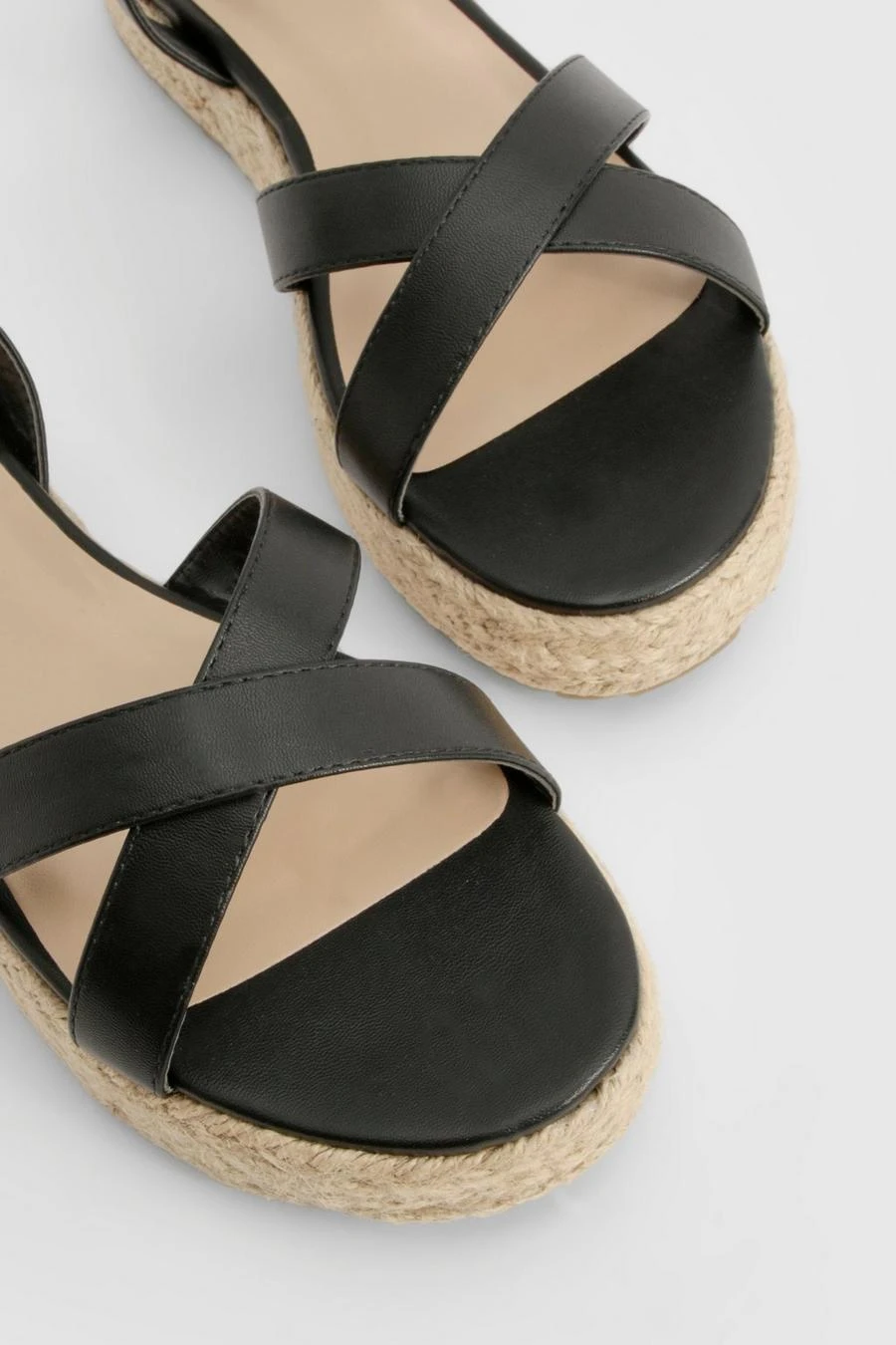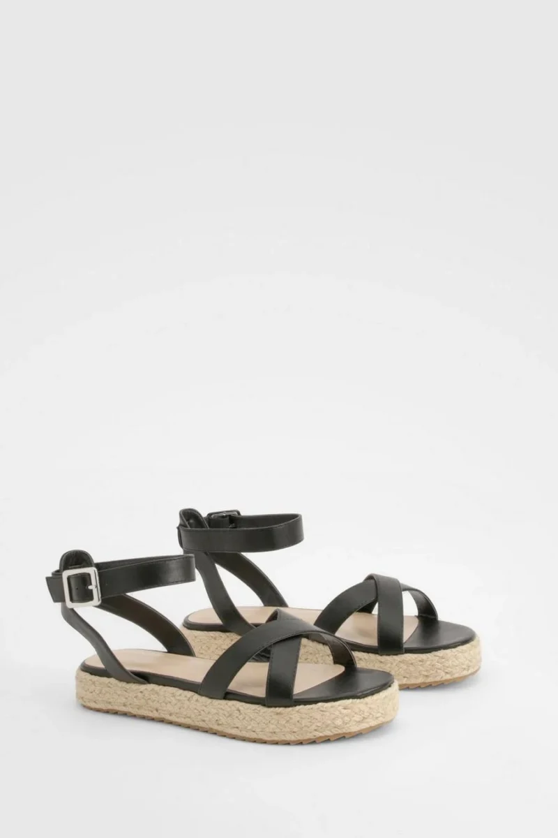 BOOHOO Cross Over Flatform Espadrille Sandals