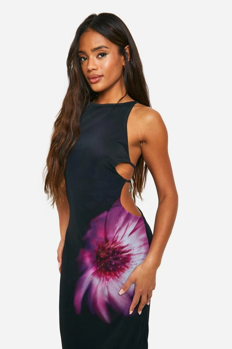 BOOHOO Cut Out Strappy Floral Mesh Maxi Dress