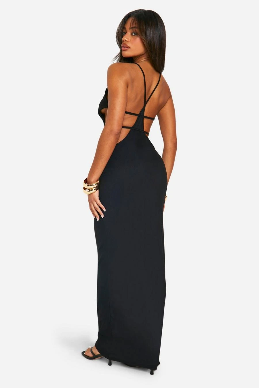 BOOHOO Cut Out Strappy Mesh Maxi Dress