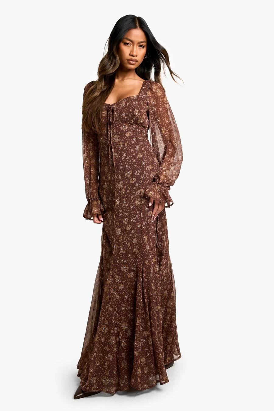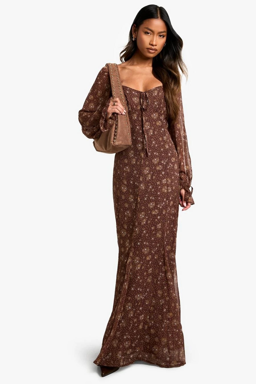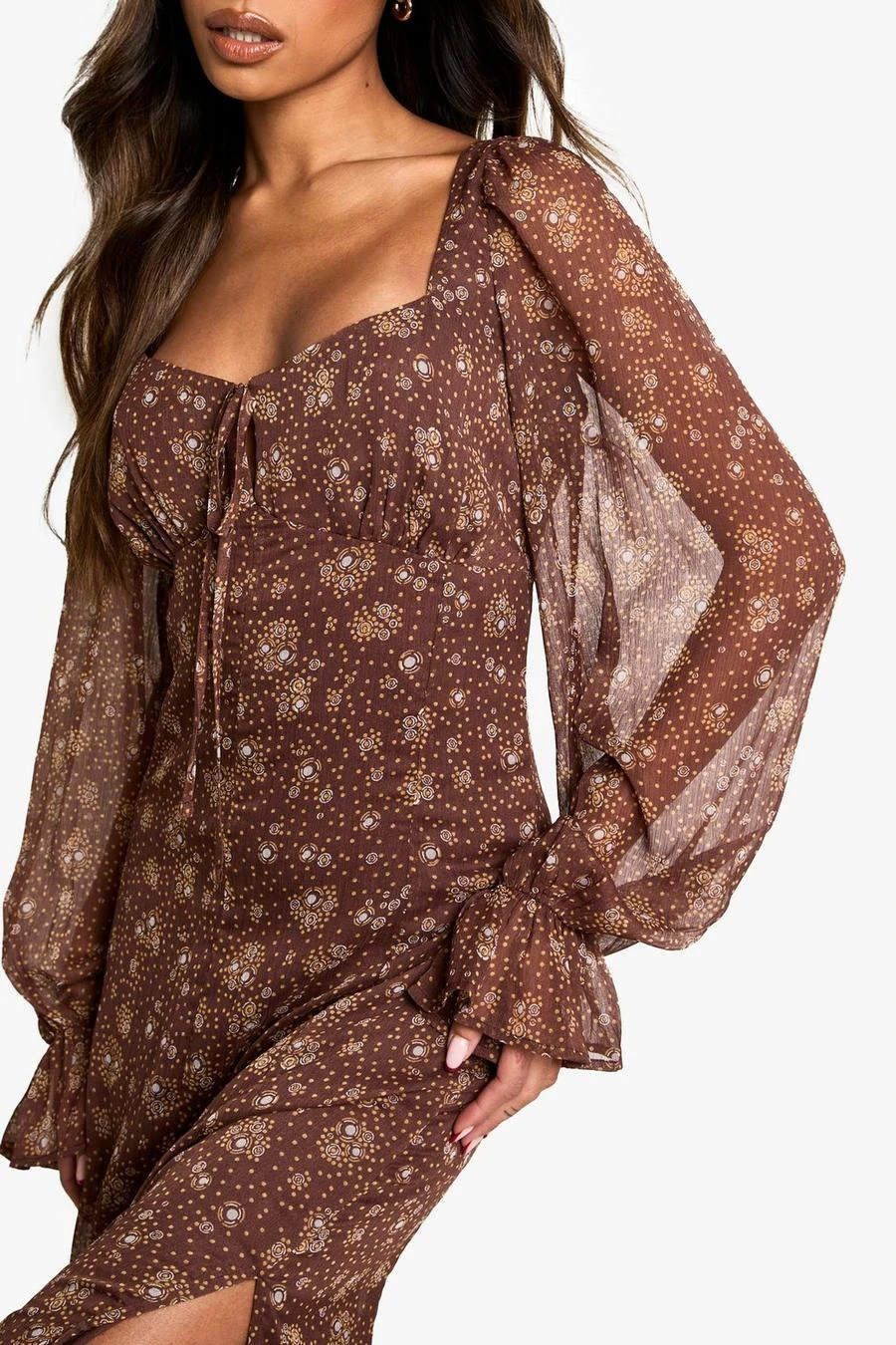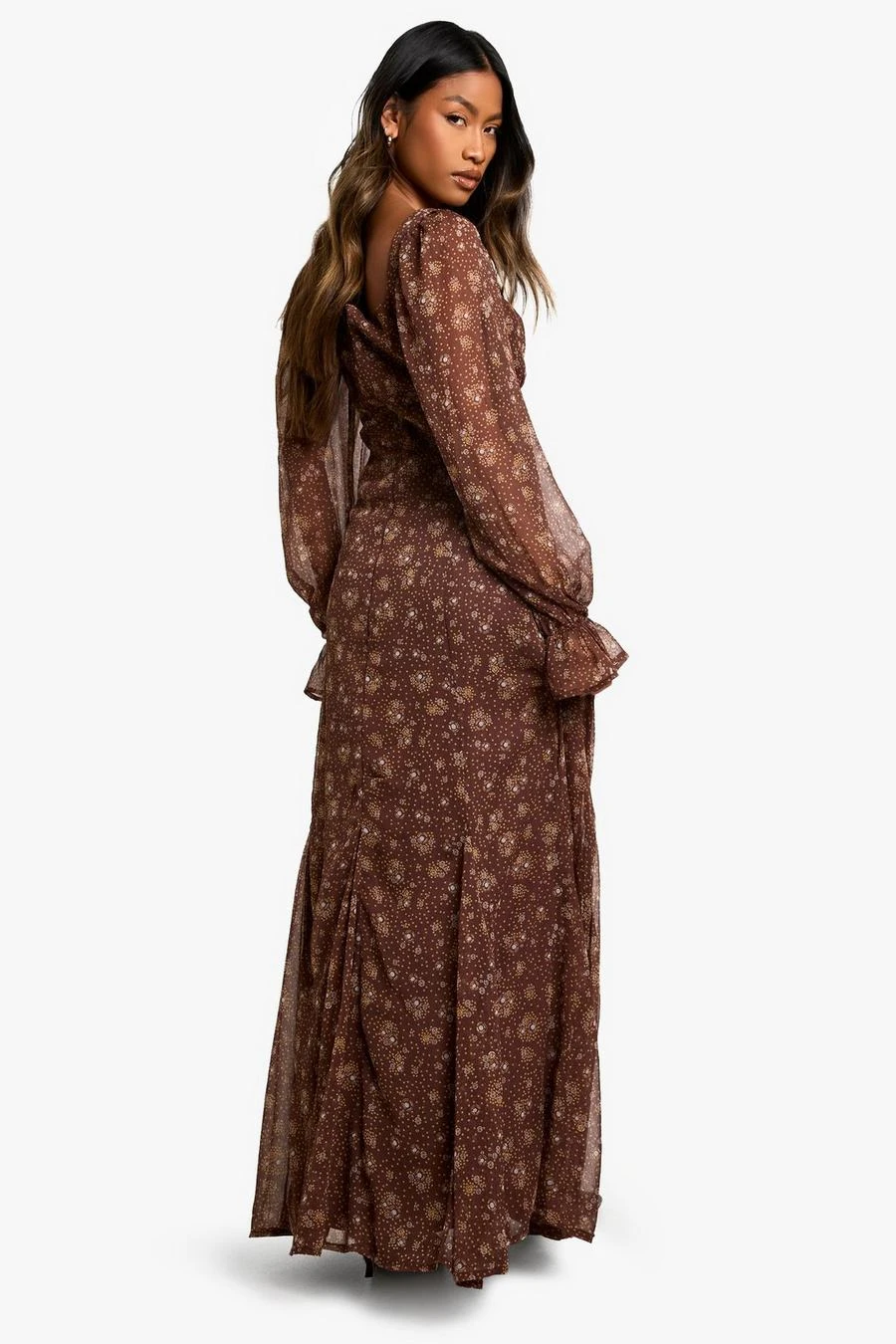 BOOHOO Ditsy Floral Crinkle Chiffon Milkmaid Maxi Dress