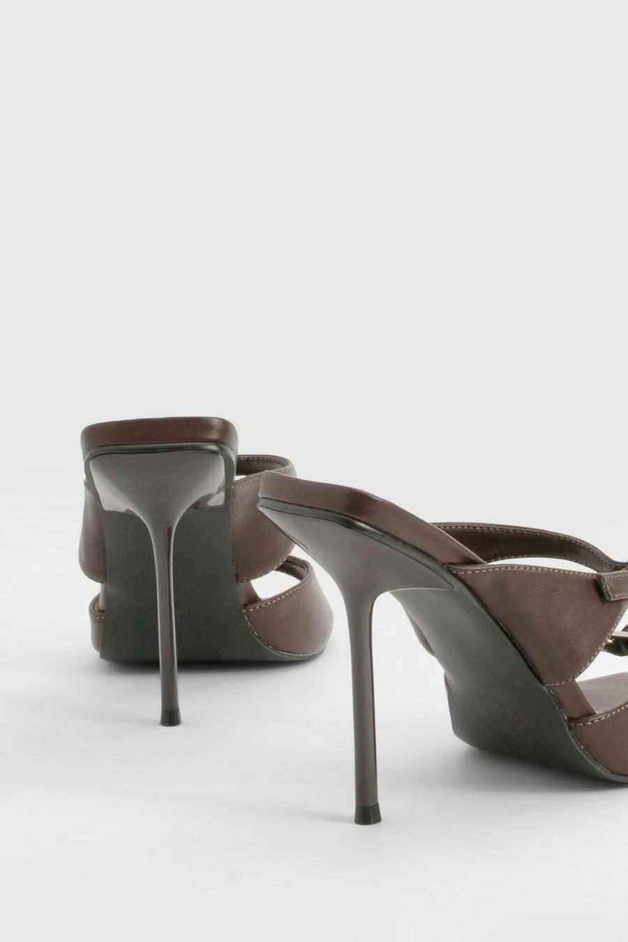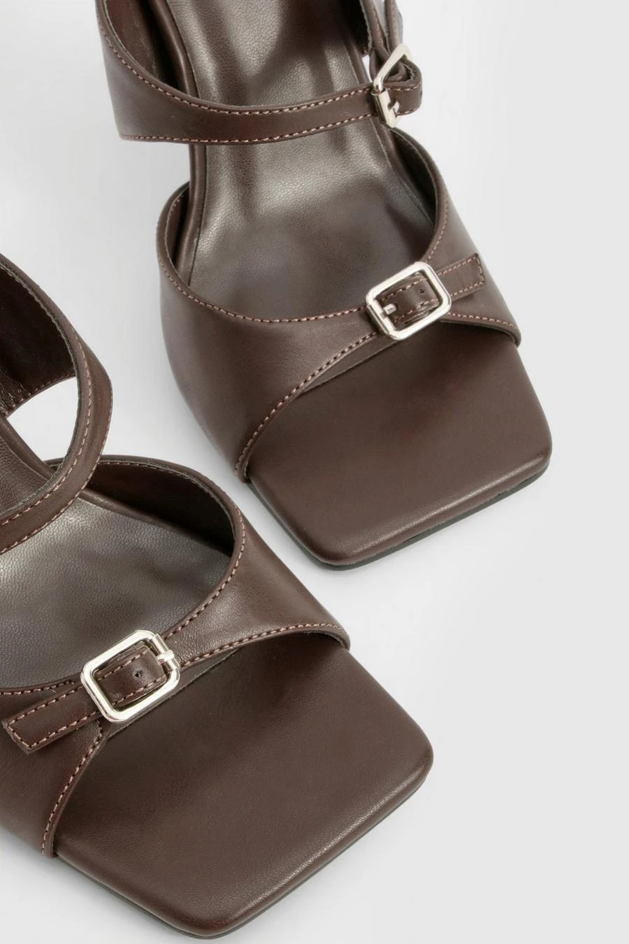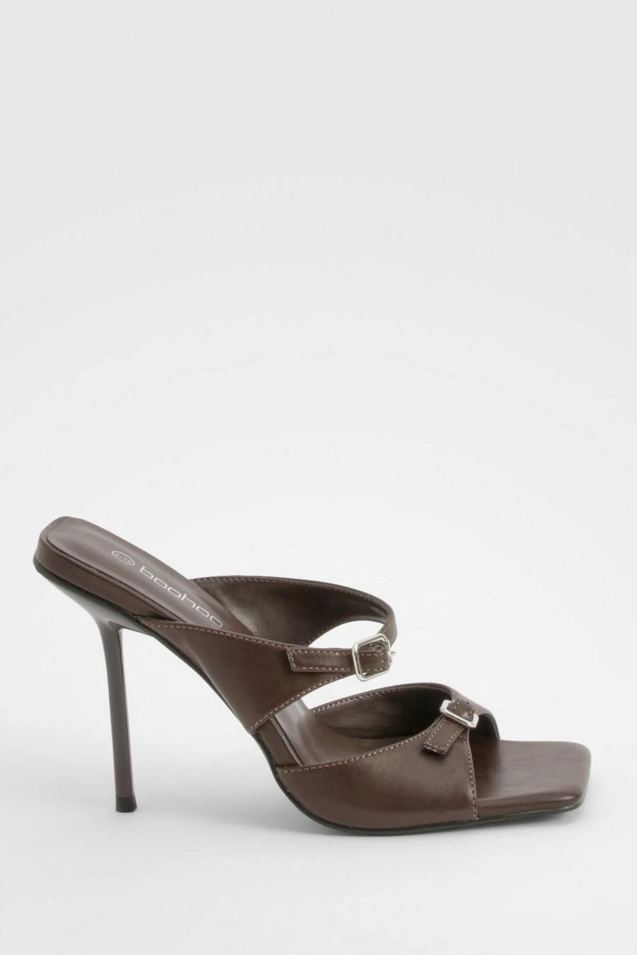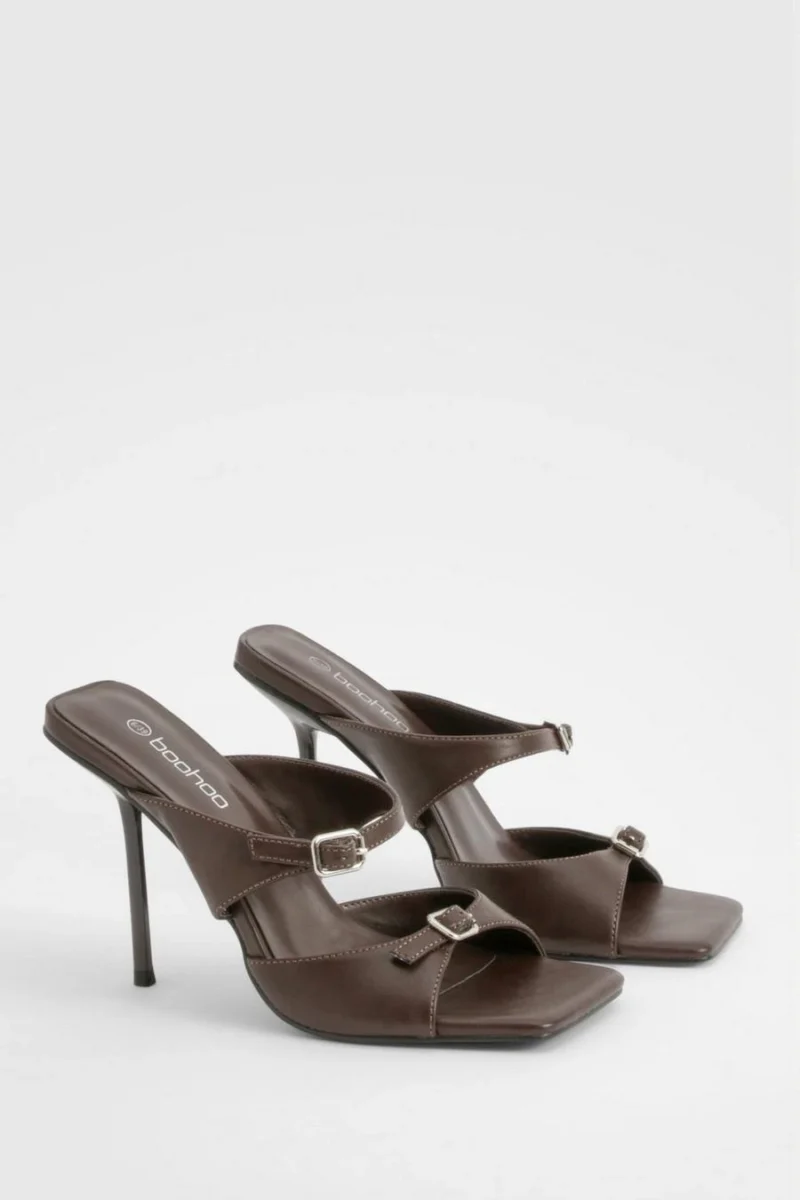 BOOHOO Double Buckle Square Toe Heeled Mules