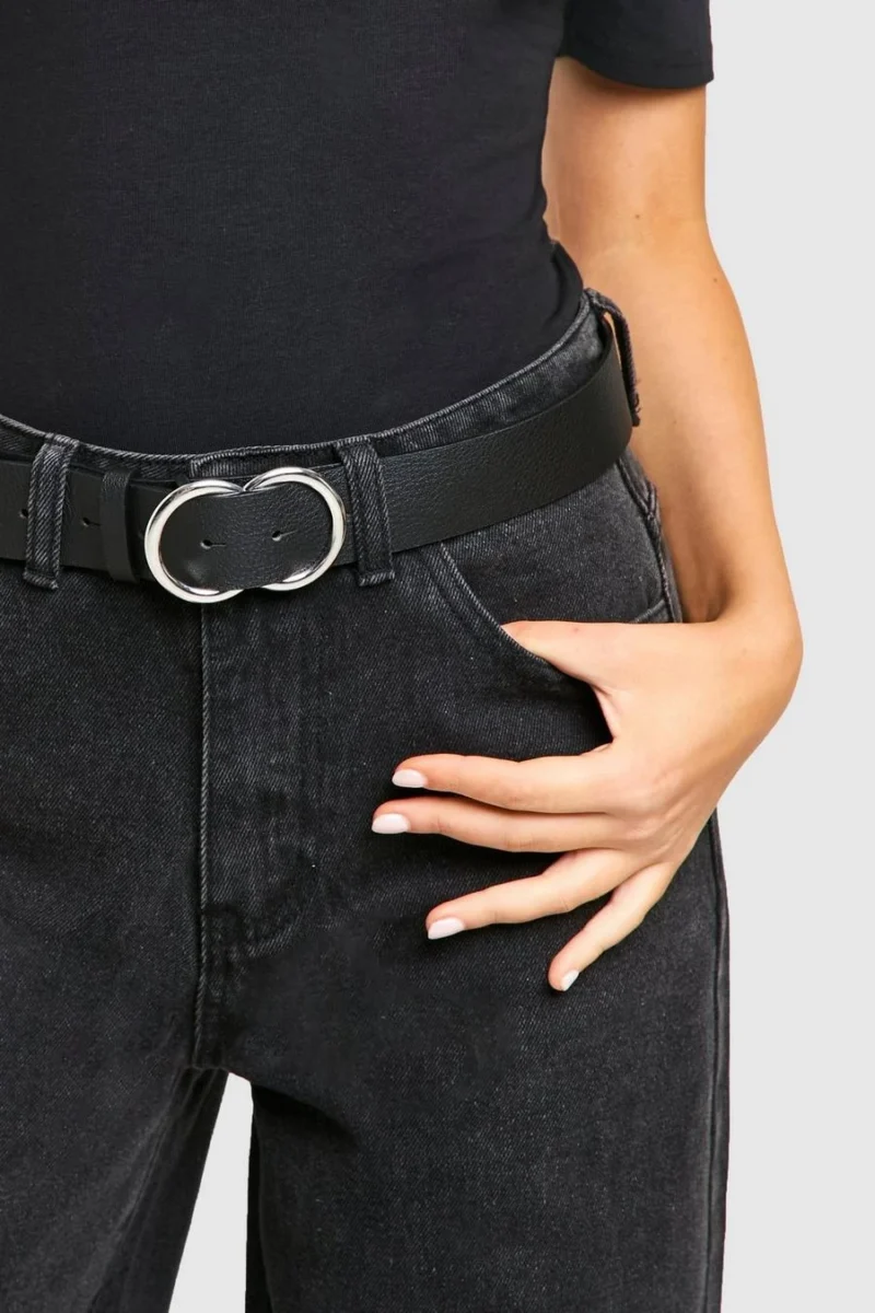 BOOHOO Double Silver Ring Detail Boyfriend Belt