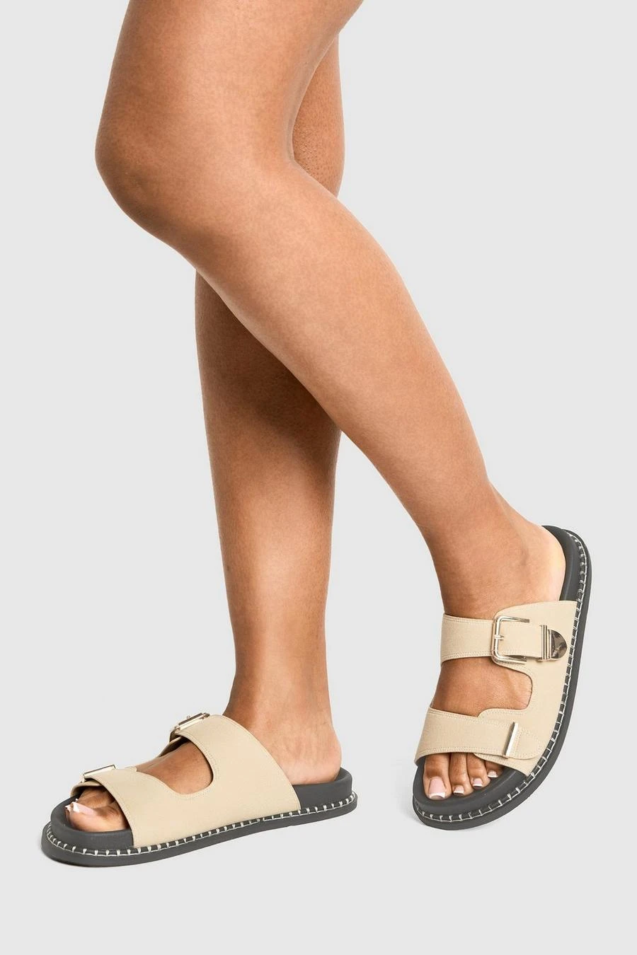 BOOHOO Double Strap Footbed Slider