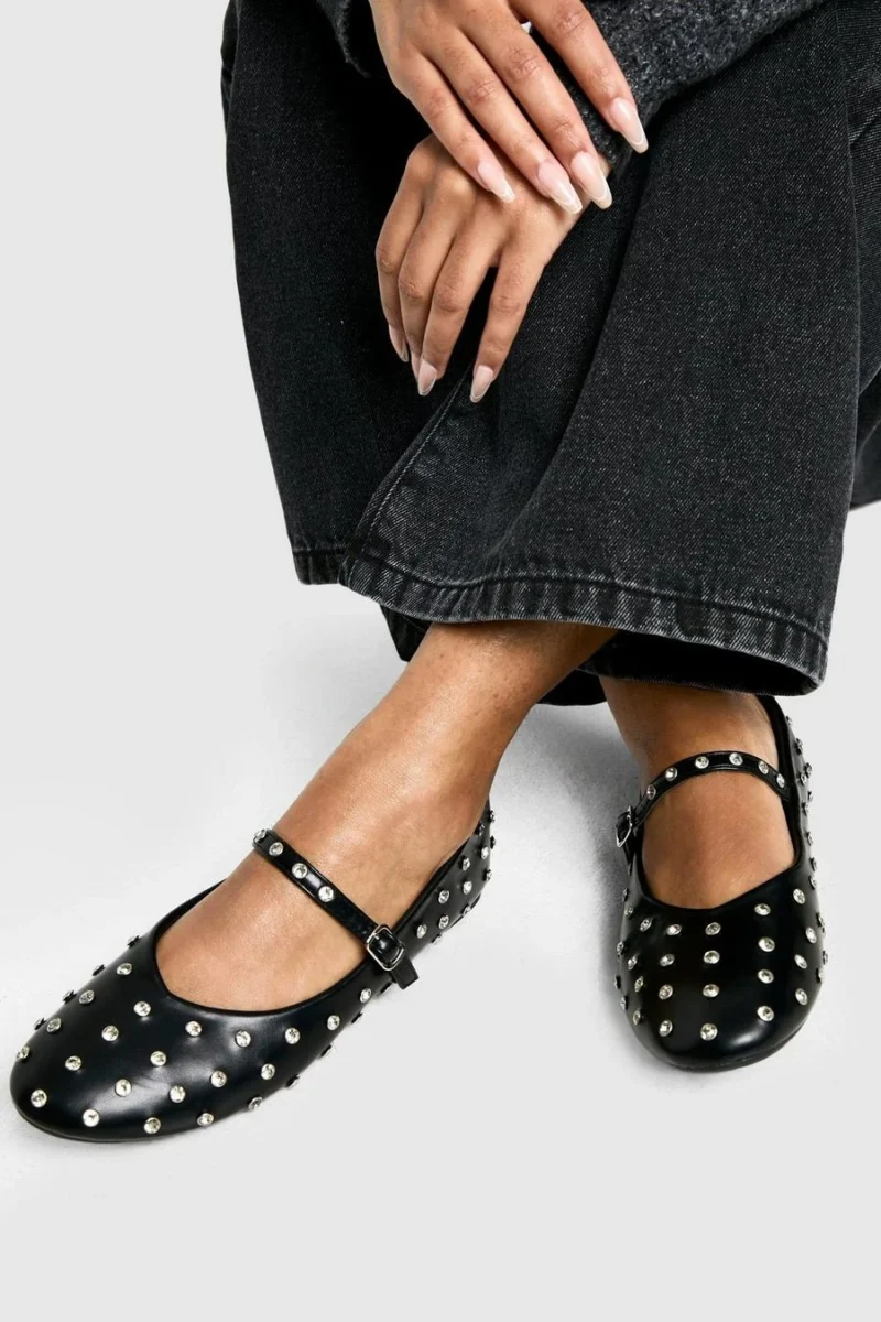 BOOHOO Embellished Mary Jane Ballet Flats