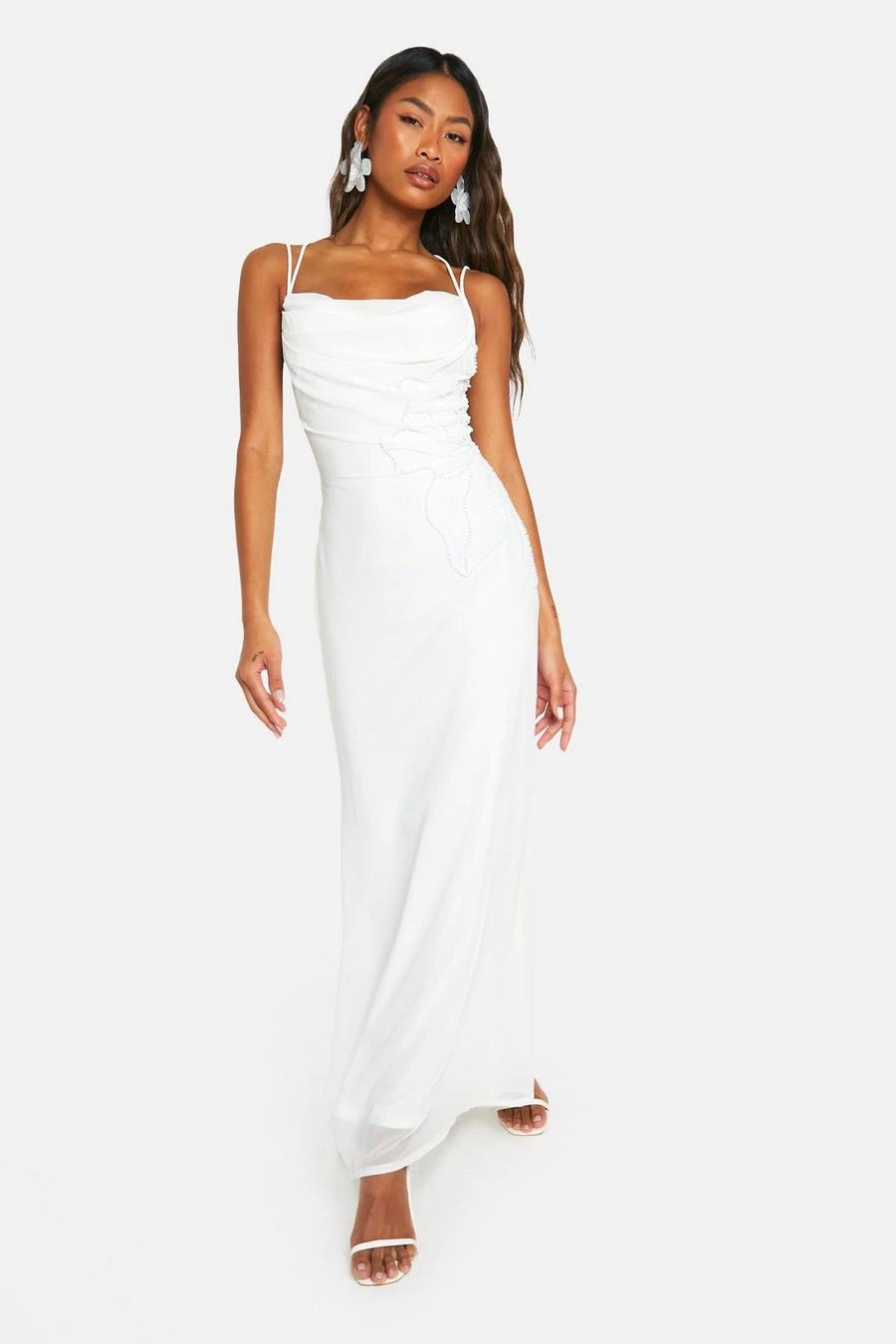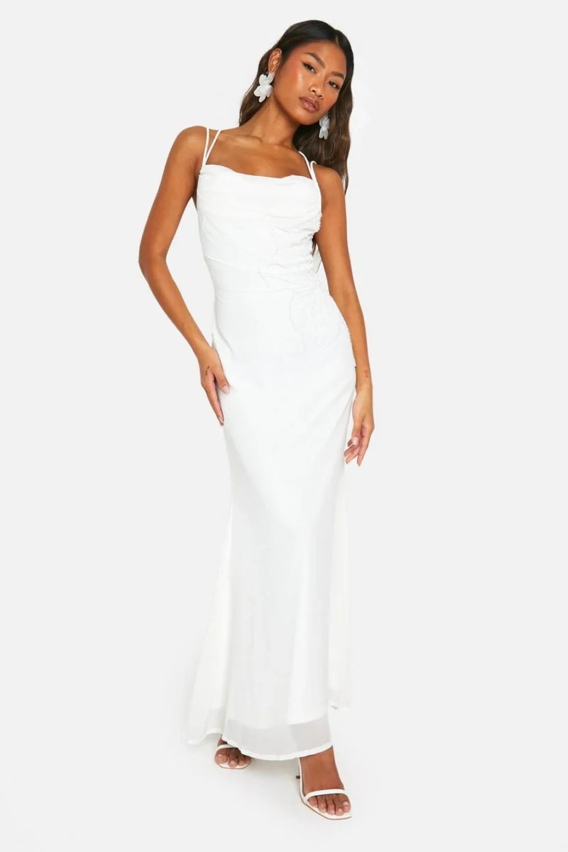 BOOHOO Embellished Sequin Floral Cowl Maxi Dress