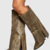 BOOHOO Embroidered Contrast Detail Western Boots