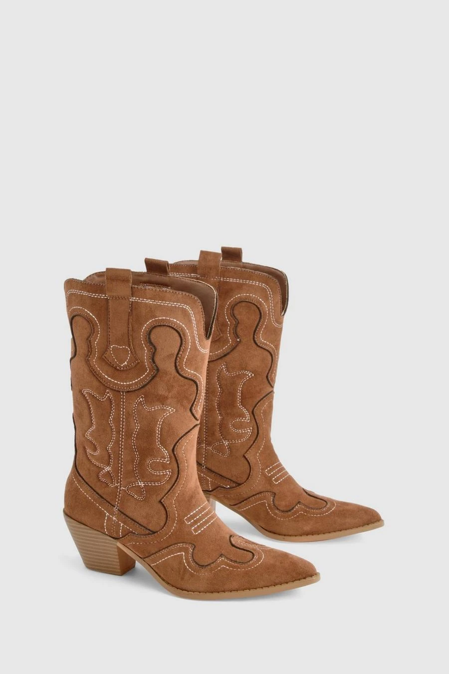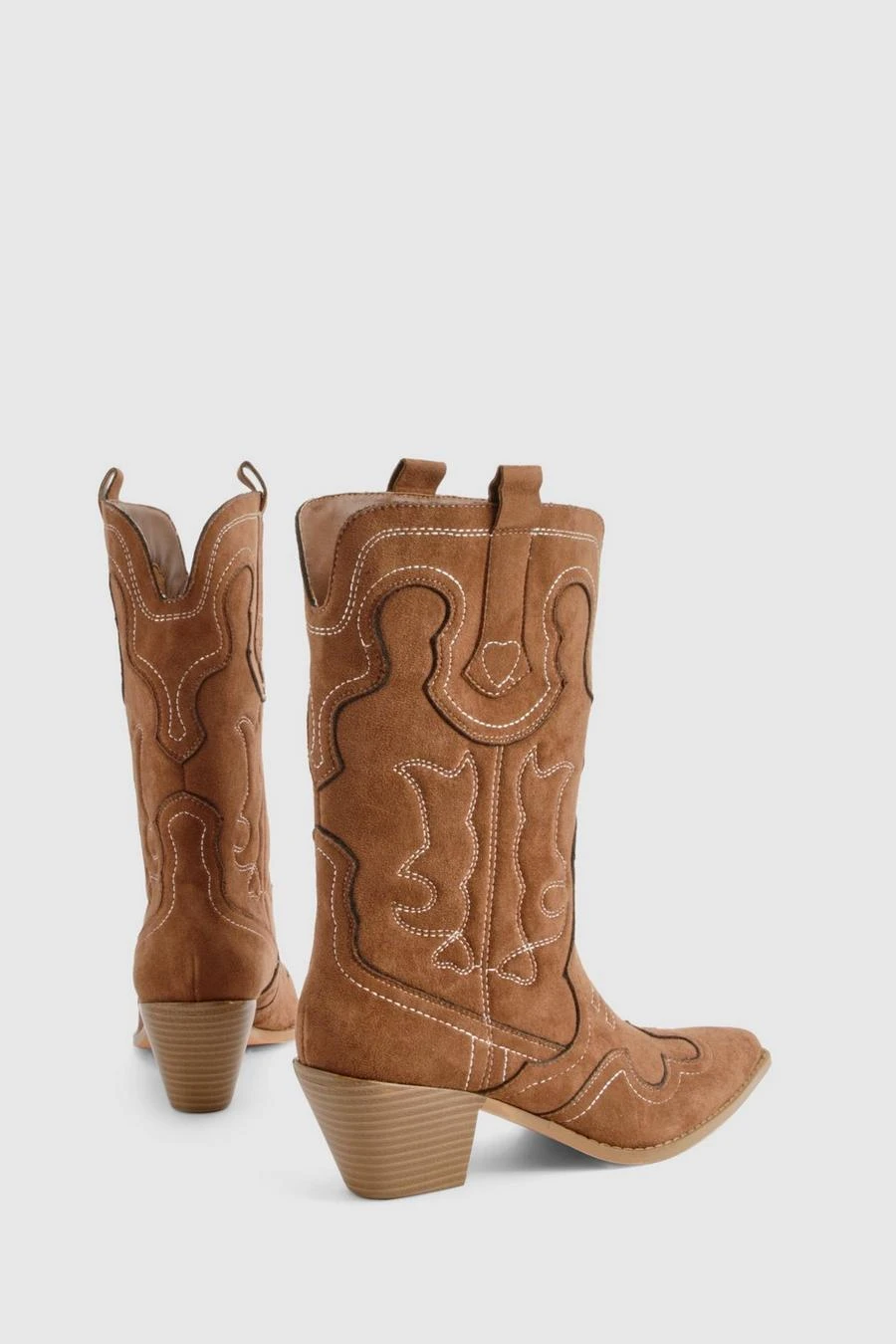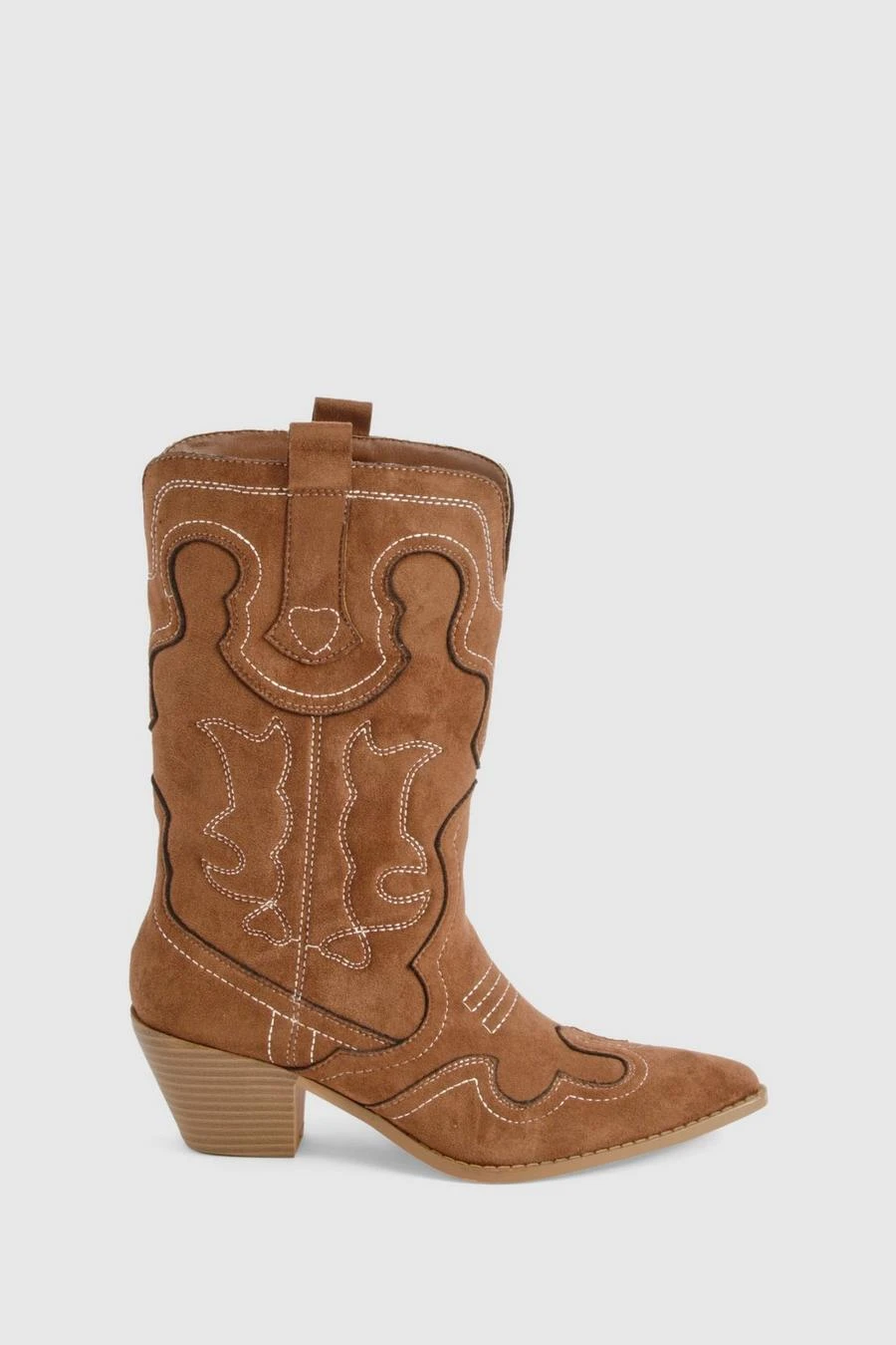 BOOHOO Embroidered Detail Western Cowboy Ankle Boots