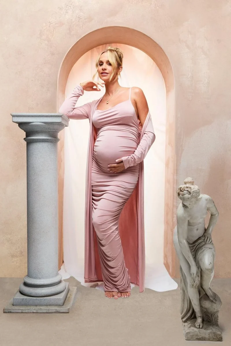 BOOHOO Emily Shak Maternity Strappy Cowl Neck Dress And Duster Coat