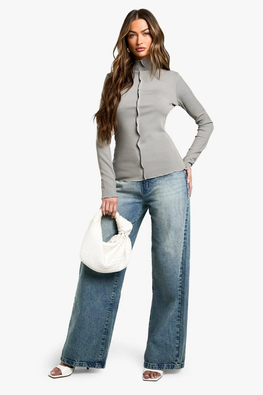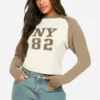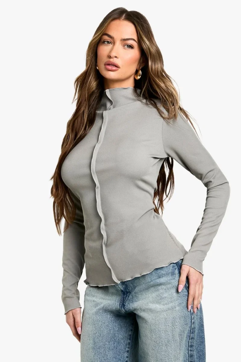 BOOHOO Exposed Seam Long Sleeve Rib Top