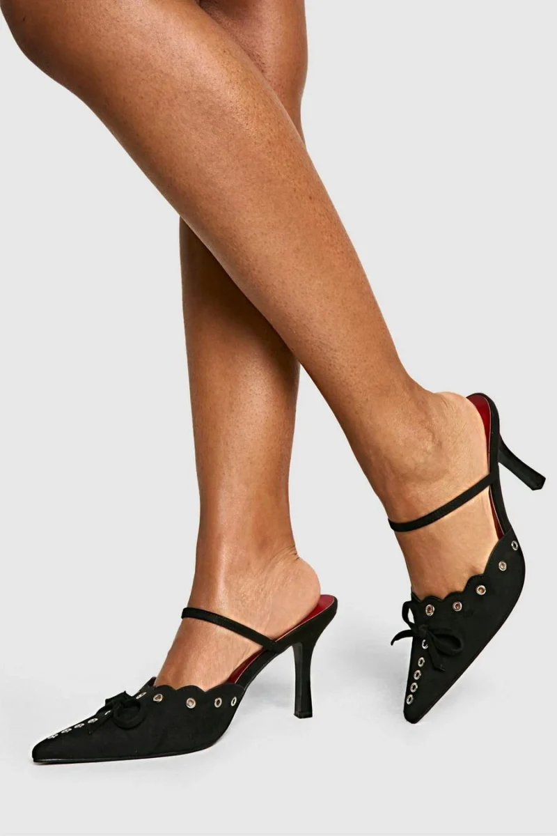 BOOHOO Eyelet Bow Stiletto Court Heels