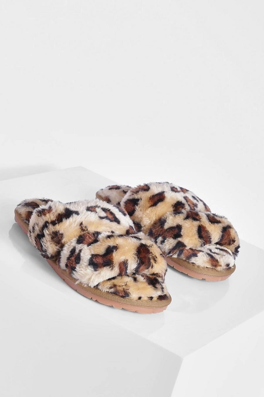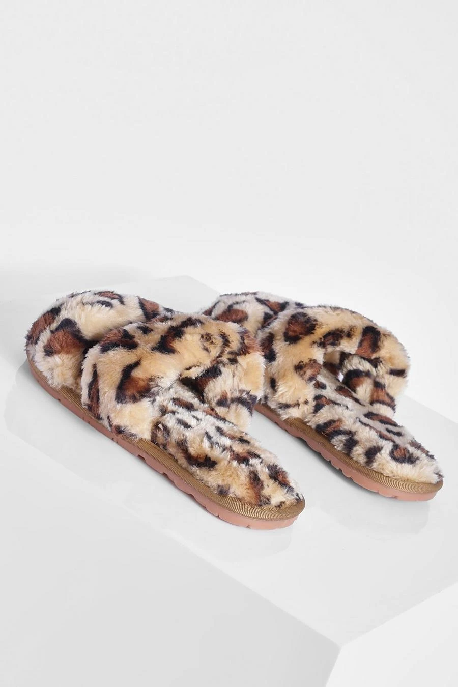 BOOHOO Faux Fur Leopard Slipper