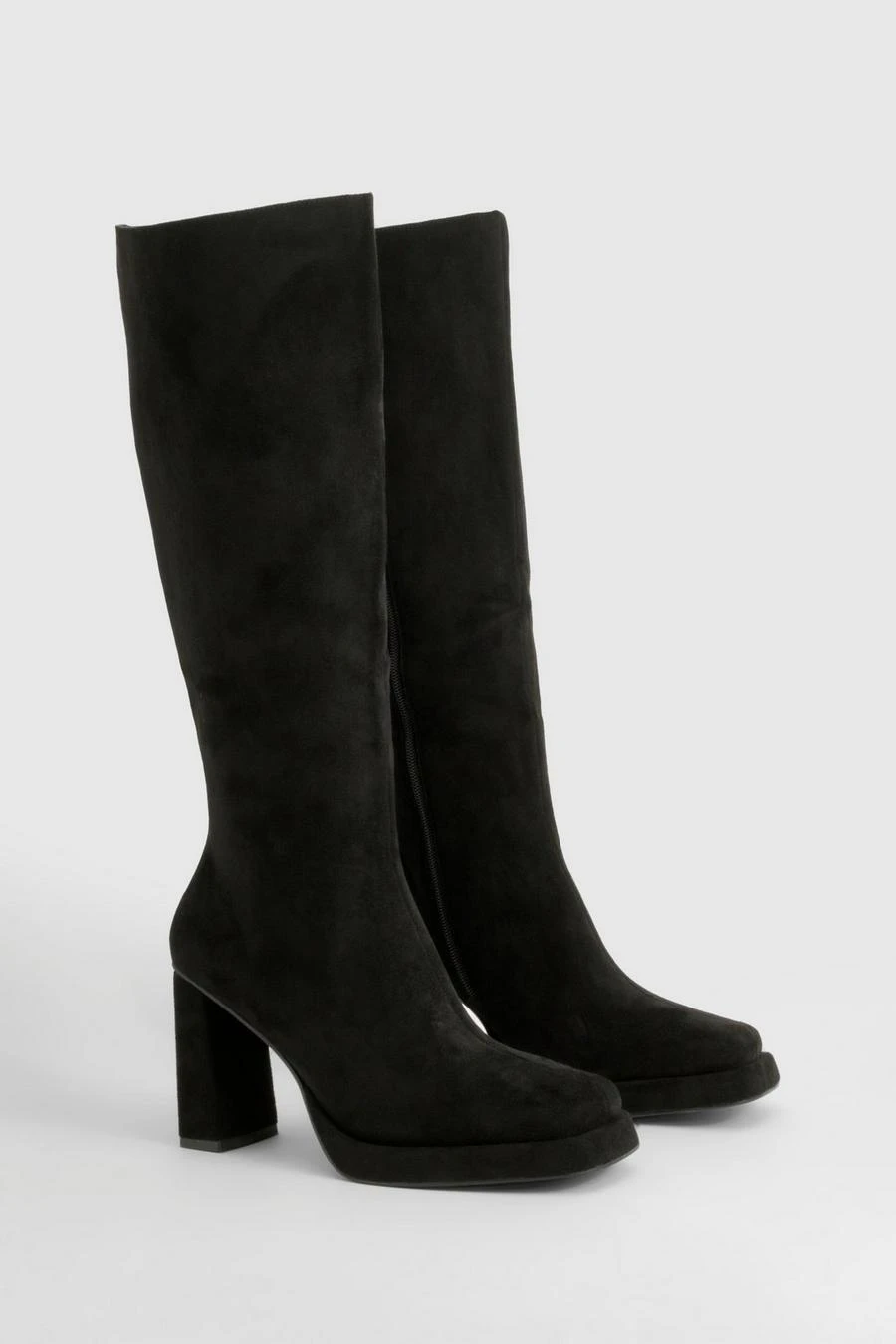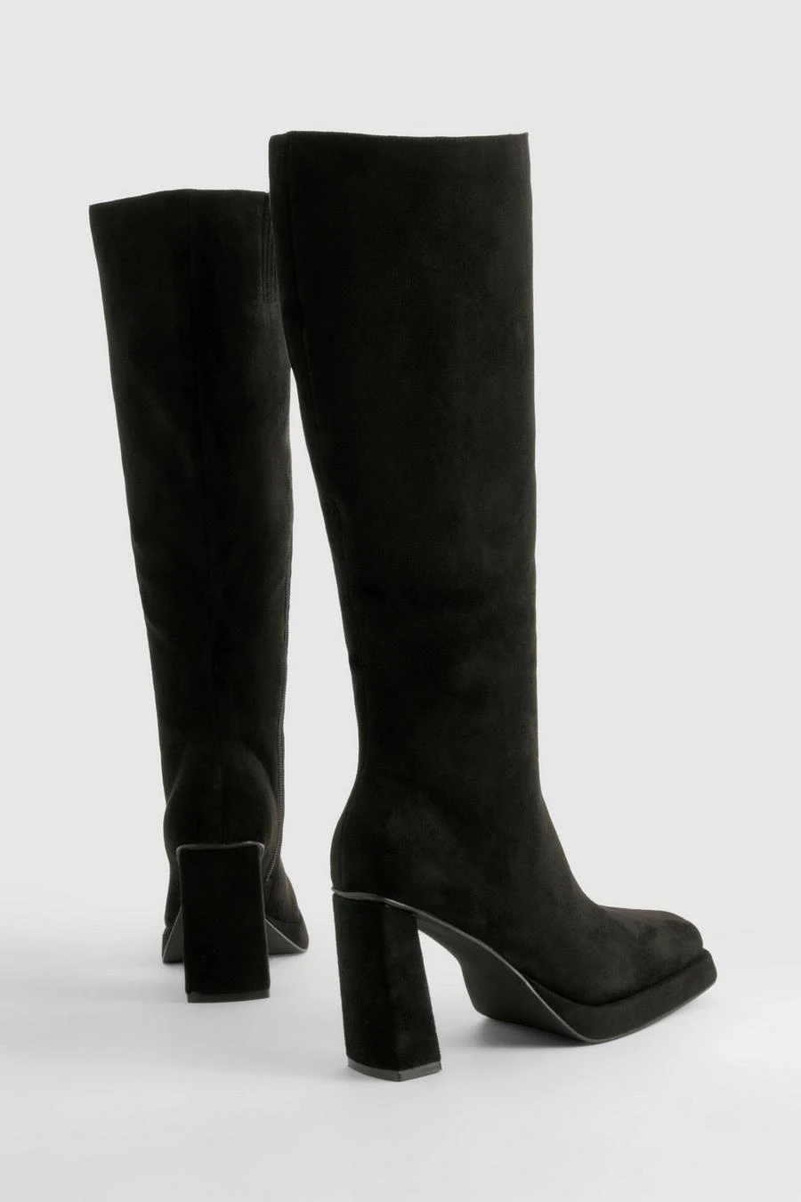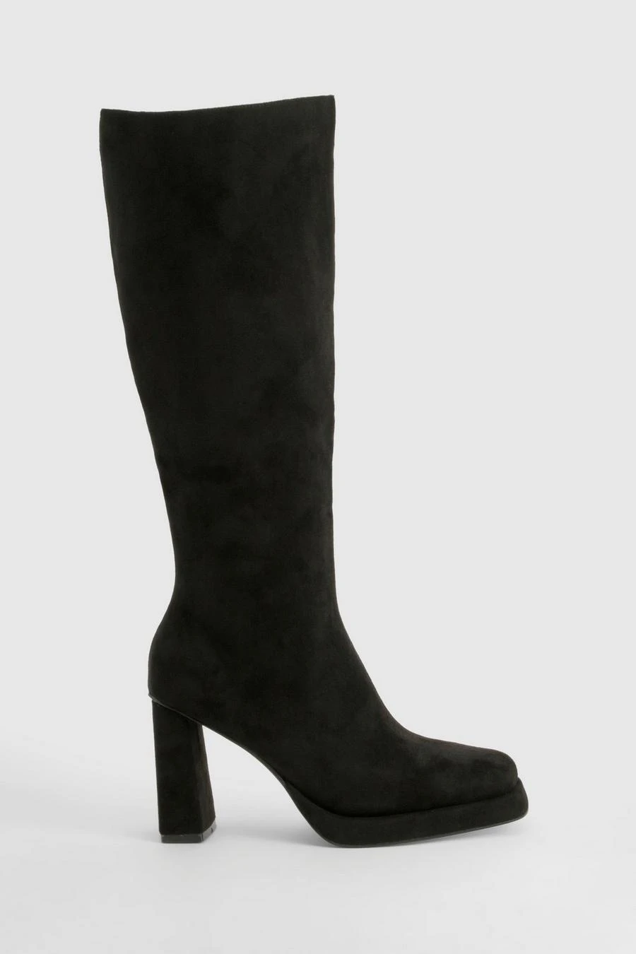BOOHOO Faux Suede Block Heel Platform Knee High Boots