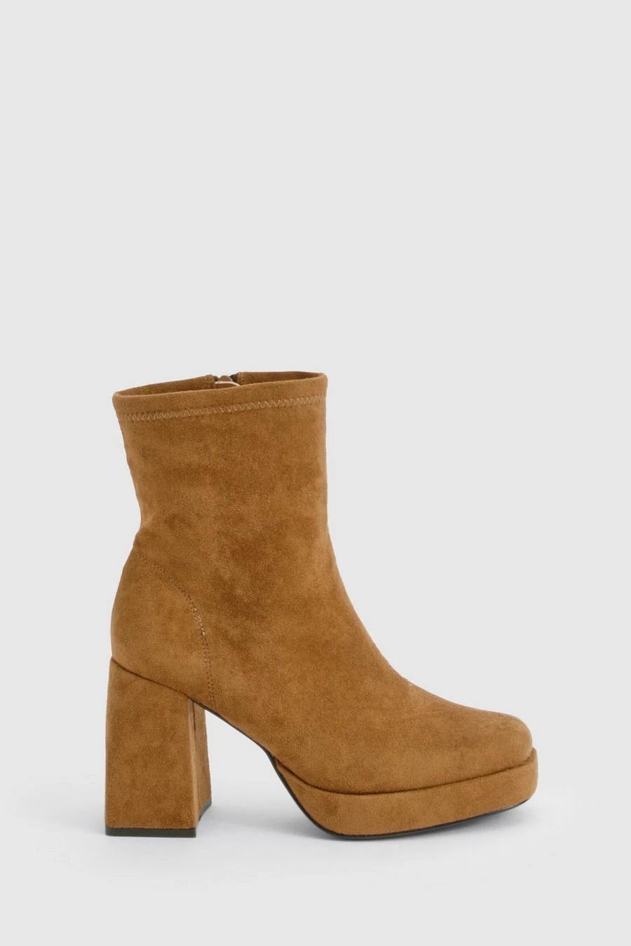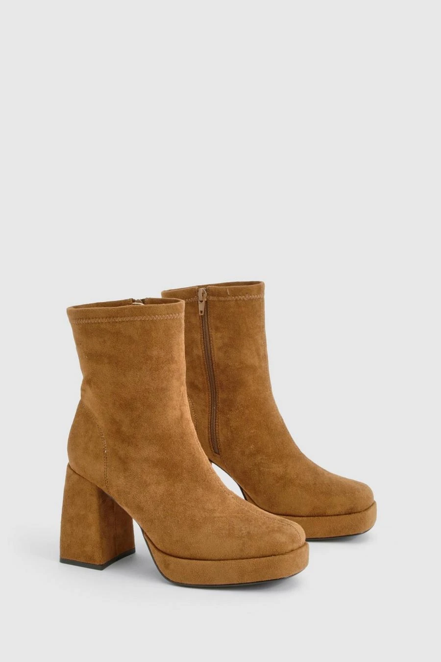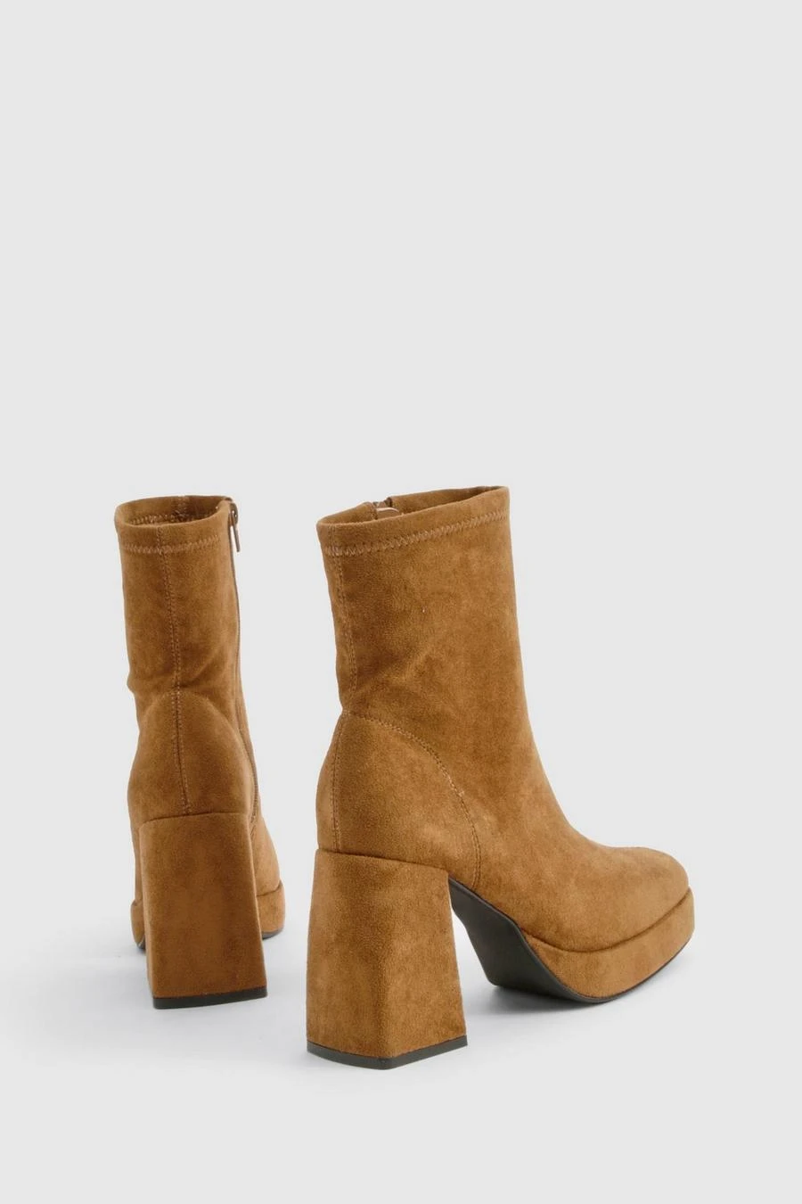 BOOHOO Faux Suede Block Heel Platform Sock Boots