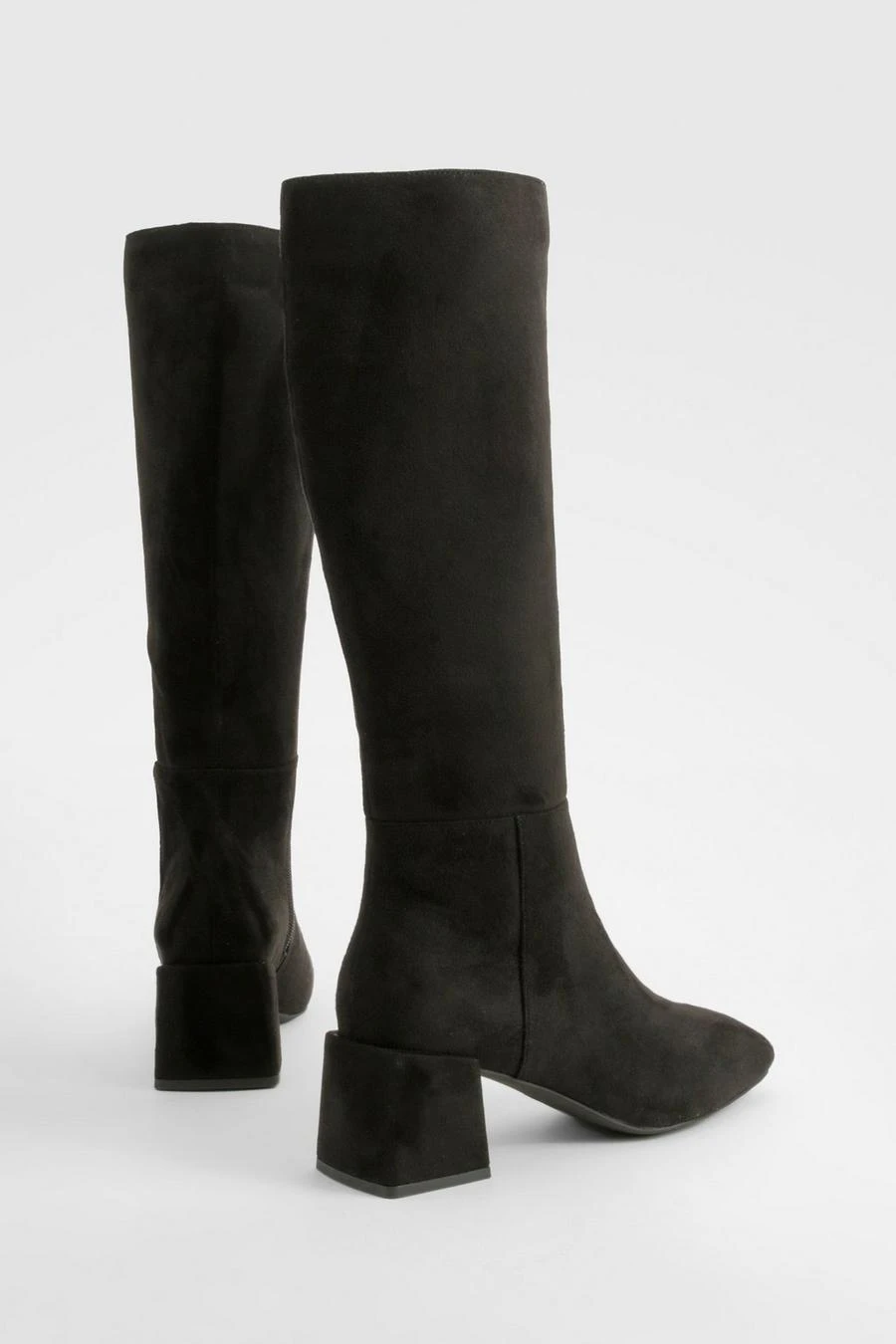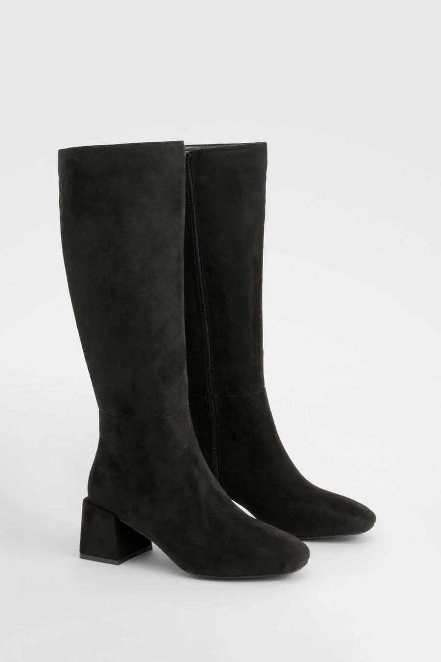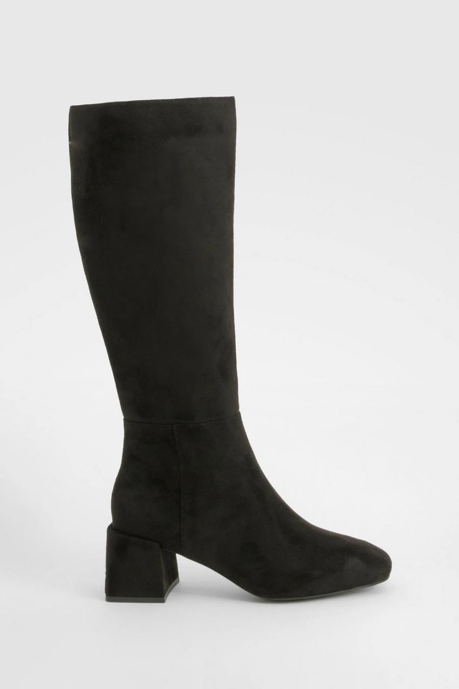 BOOHOO Faux Suede Block Heeled Knee High Boot