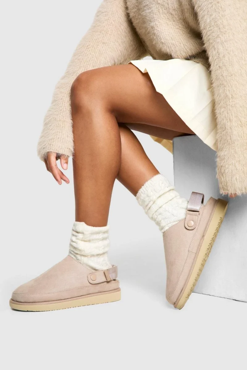 BOOHOO Faux Suede Chunky Slingback Closed Toe Clogs