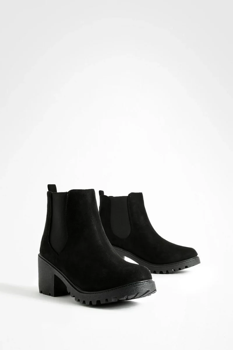 BOOHOO Faux Suede Cleated Chunky Chelsea Boots