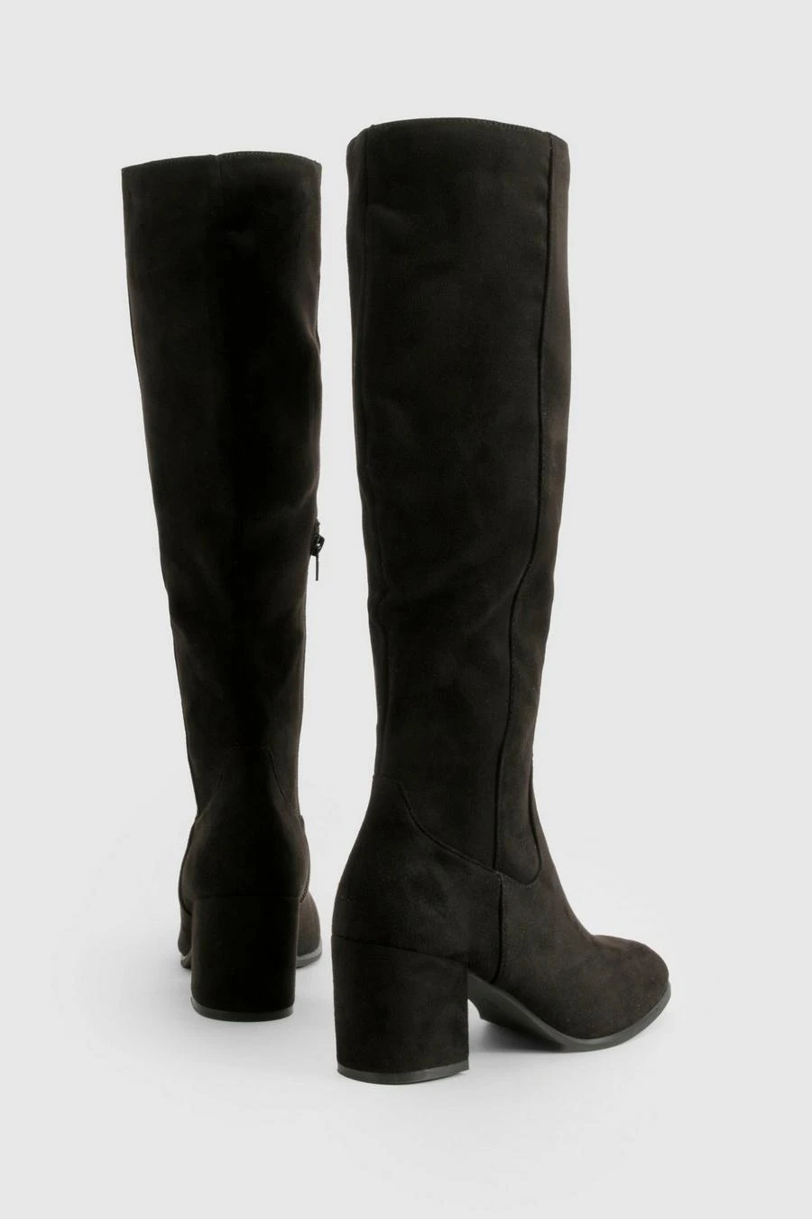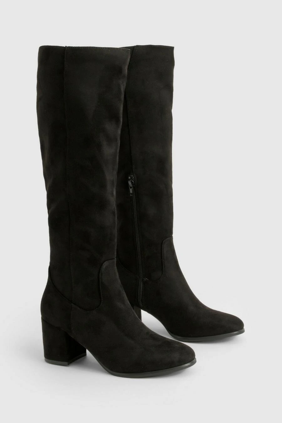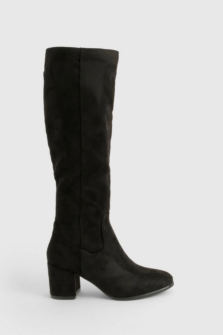 BOOHOO Faux Suede Low Block Pull On Knee High Boots