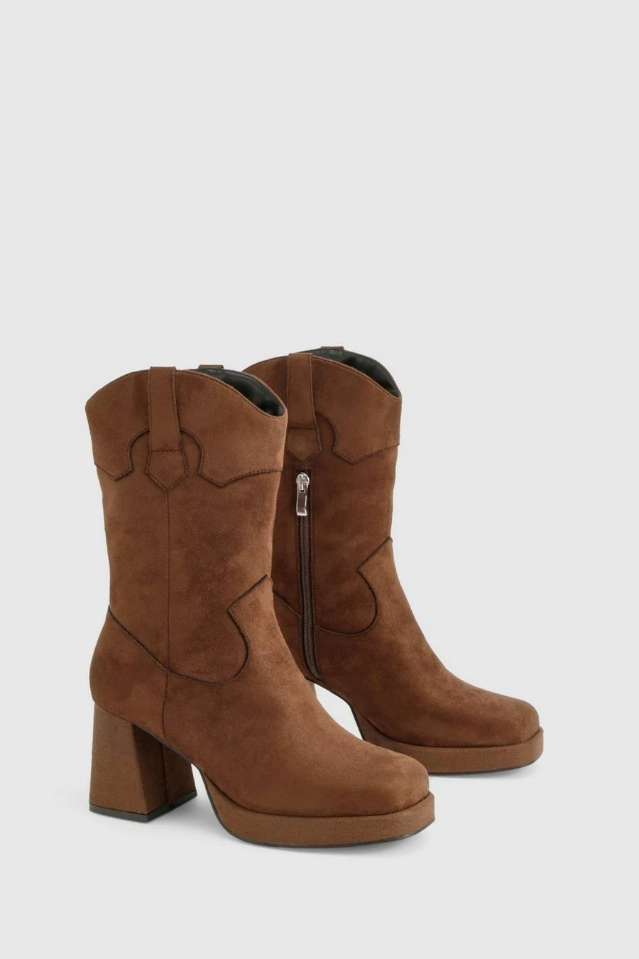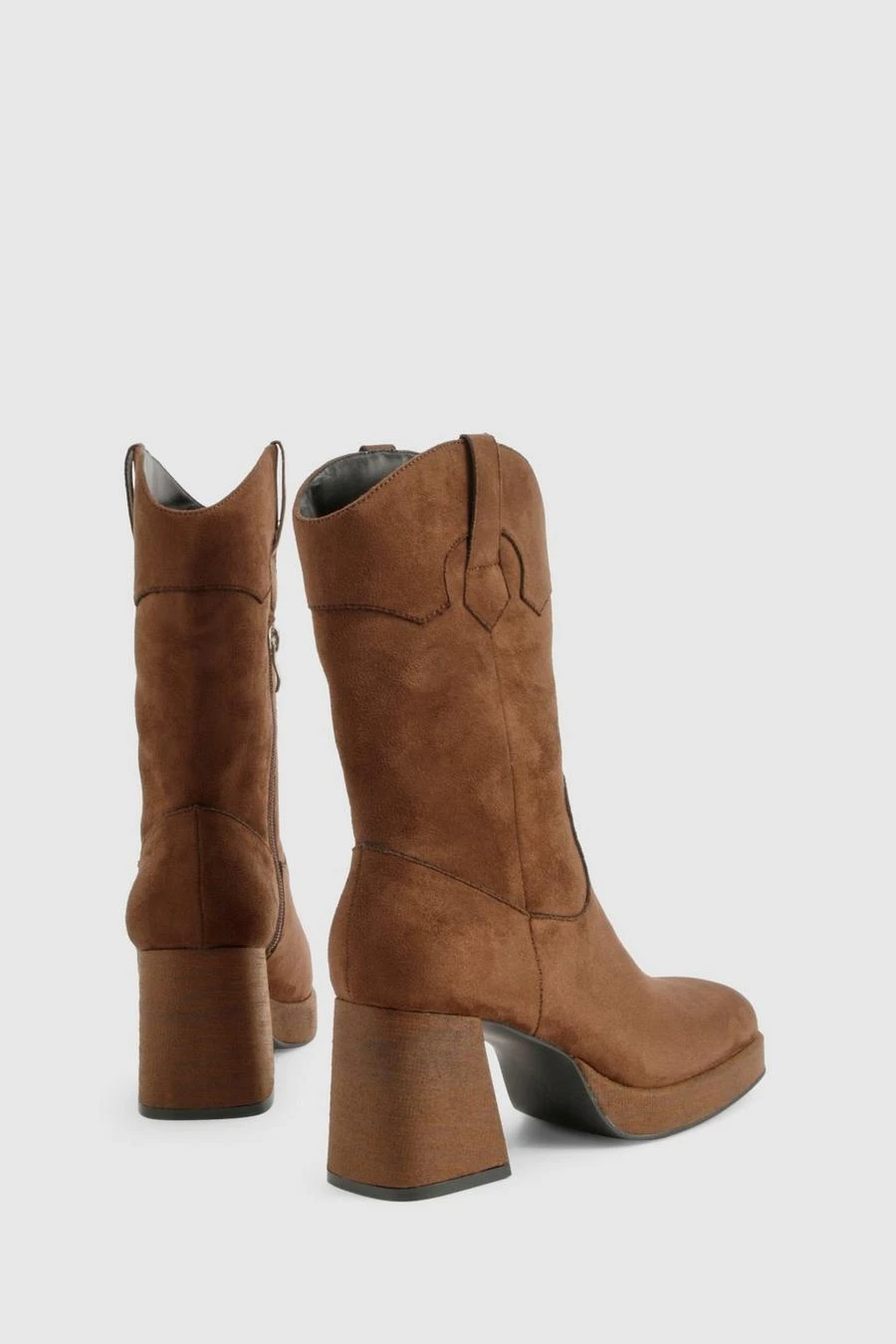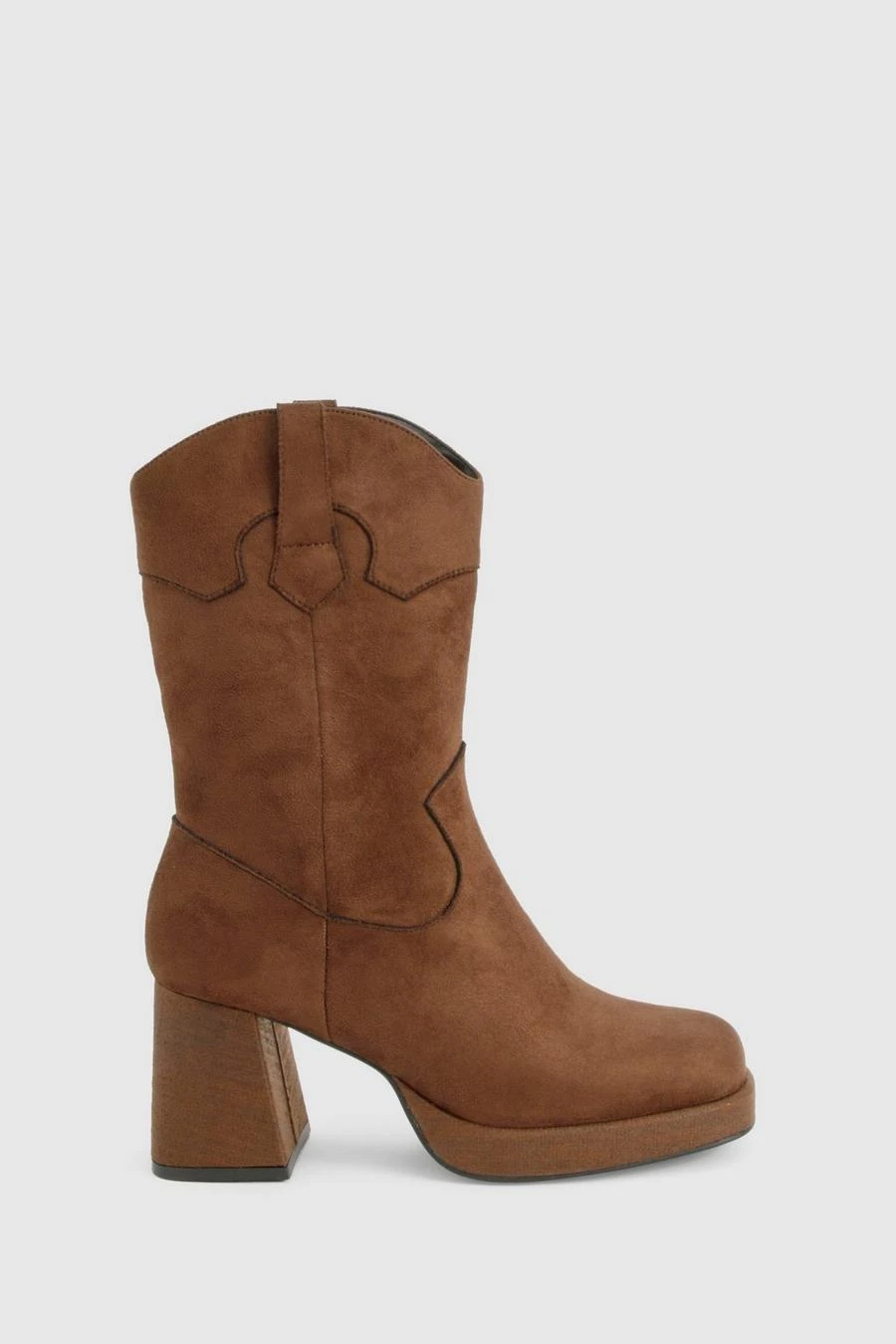 BOOHOO Faux Suede Platform Wooden Heel Detail Ankle Boot