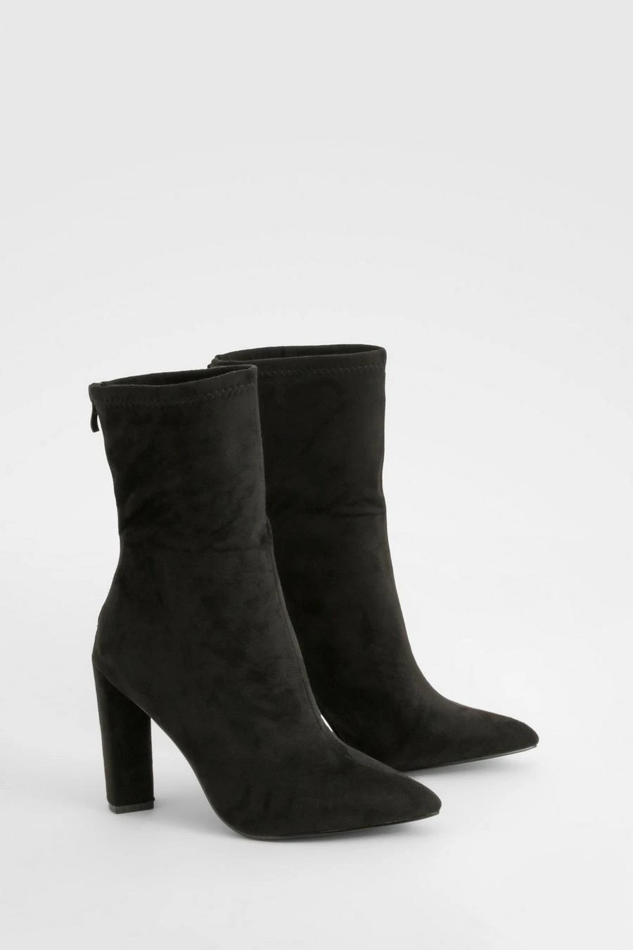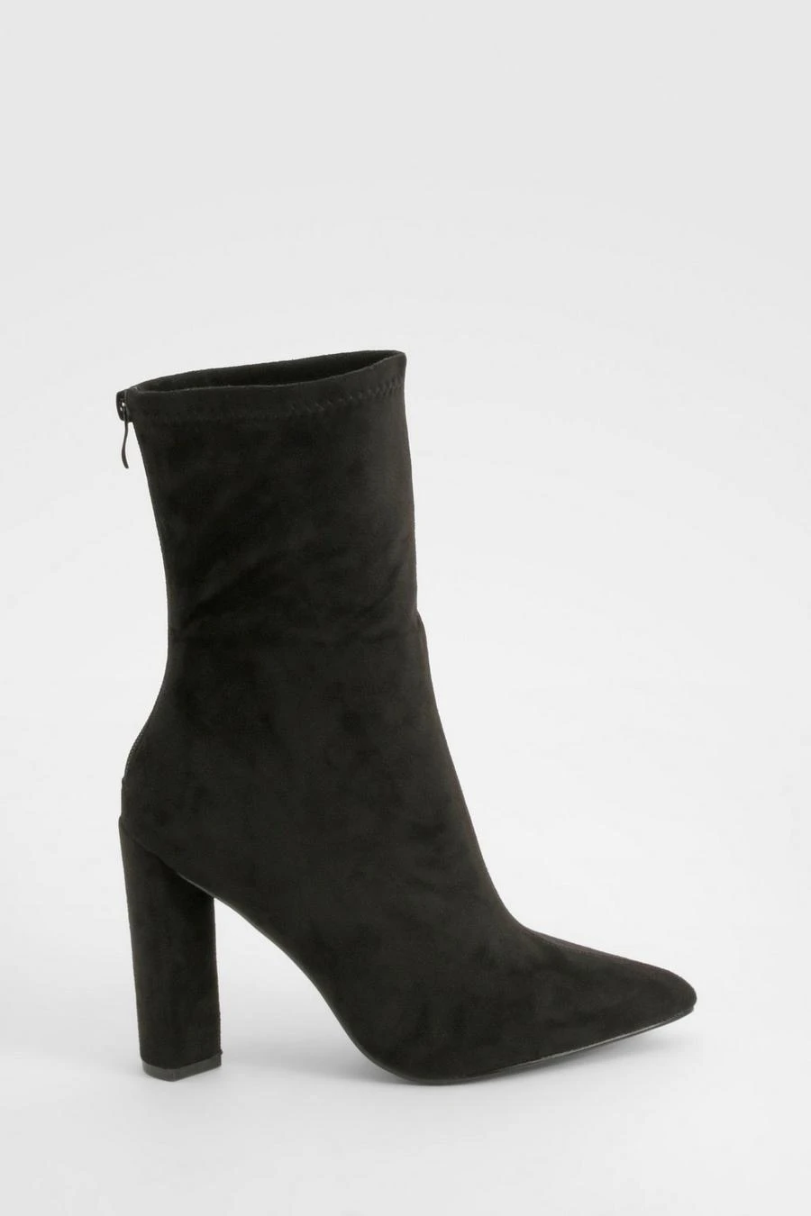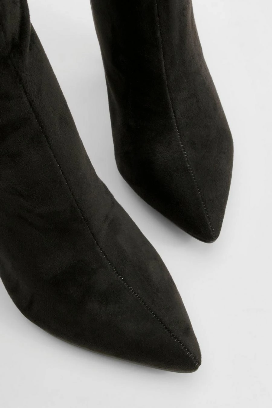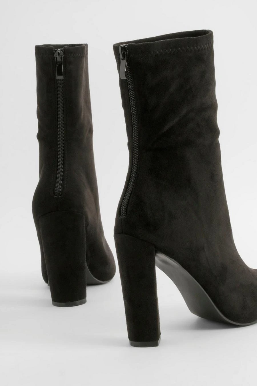 BOOHOO Faux Suede Pointed Block Heel Sock Boots