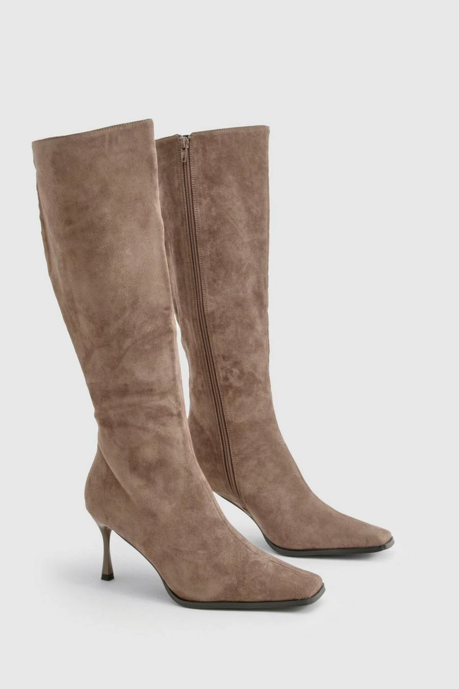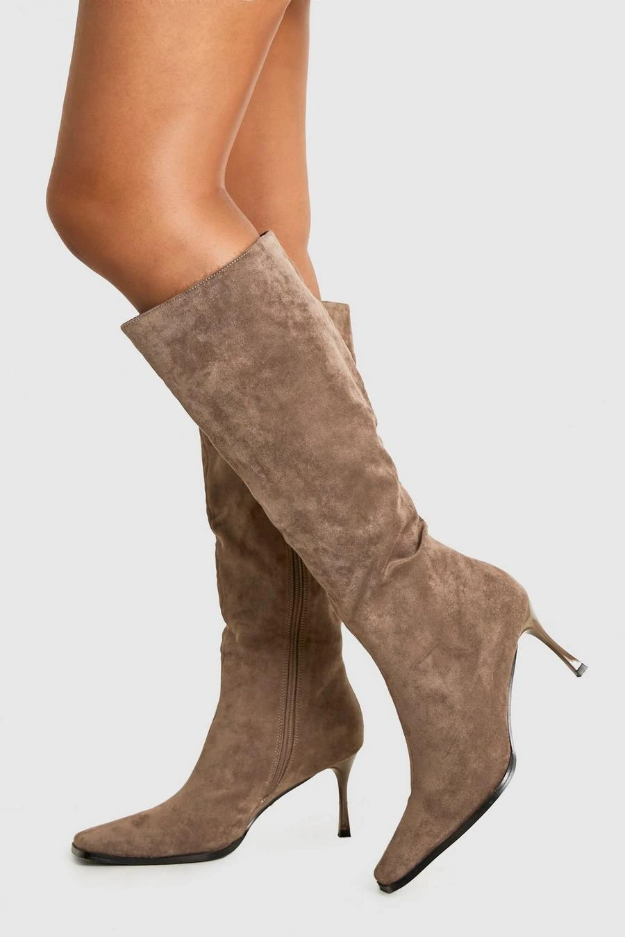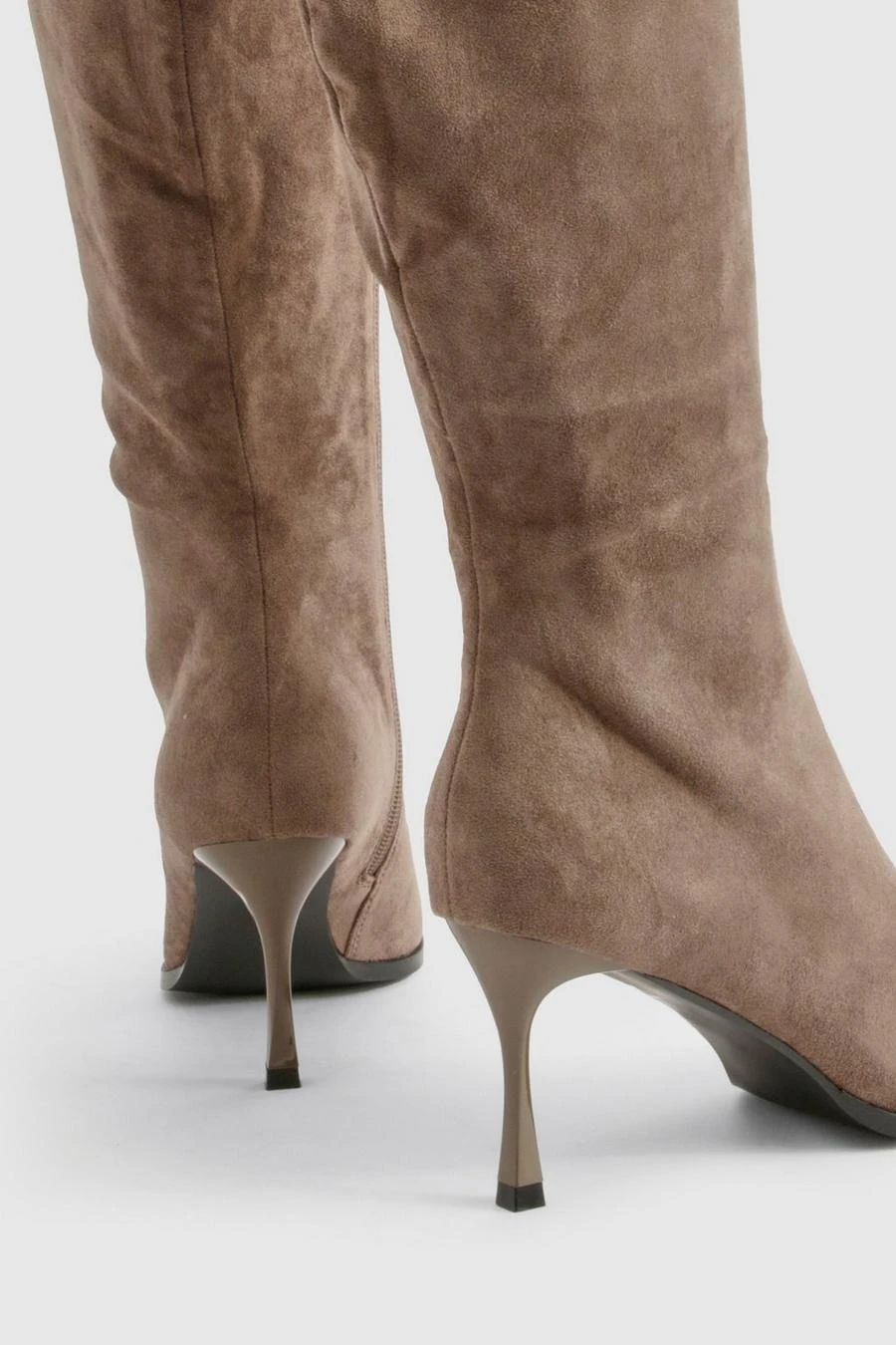BOOHOO Faux Suede Pointed Toe Heeled Knee High Boots