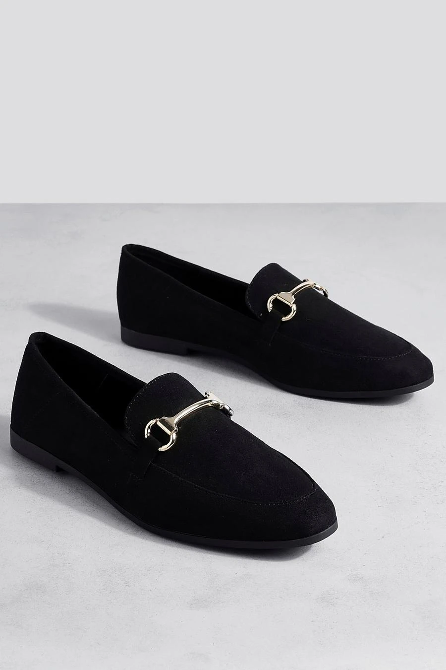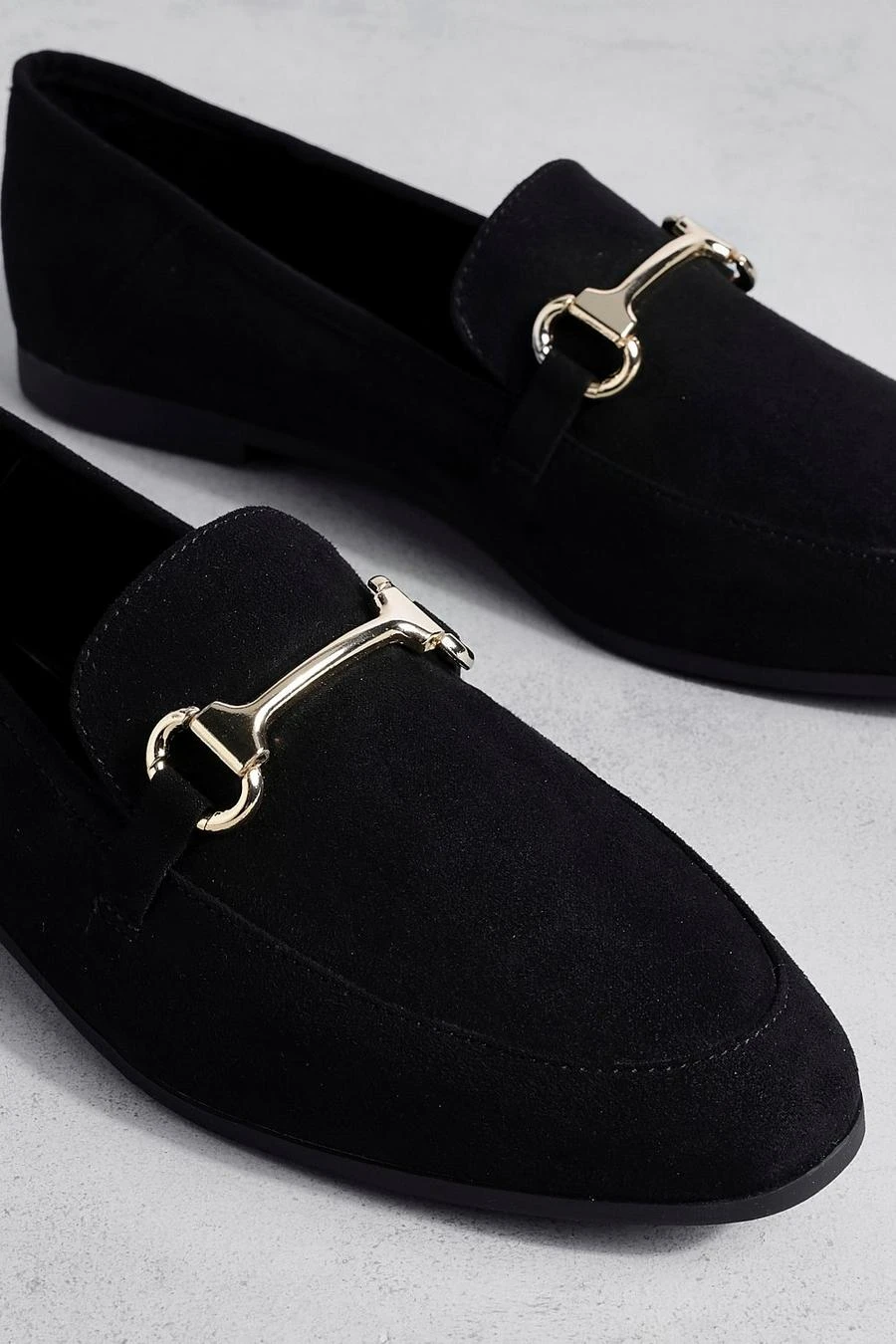 BOOHOO Faux Suede Round Toe Single Bar Trim Loafers