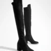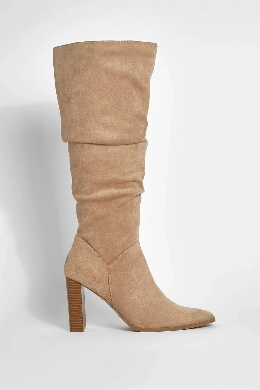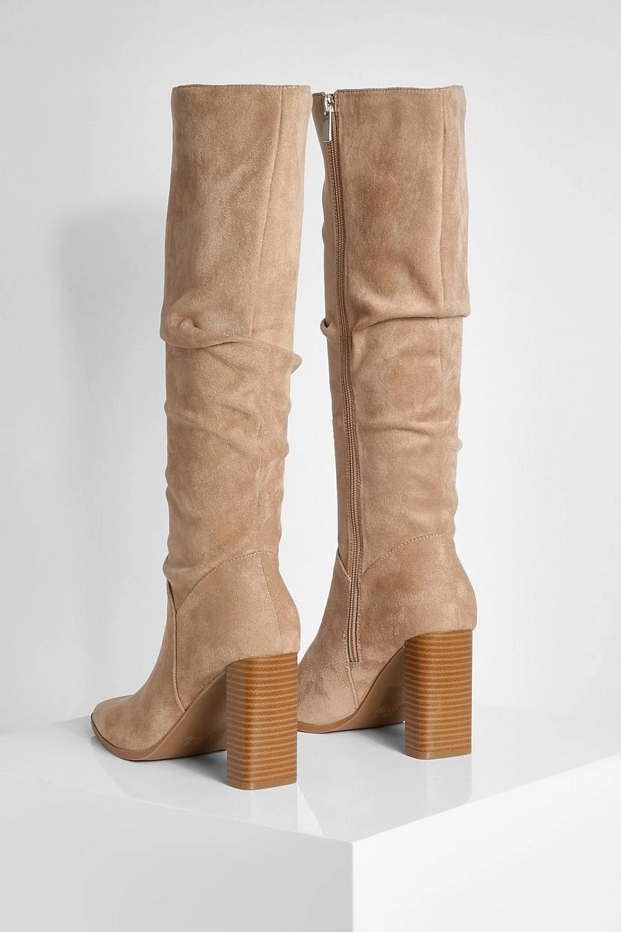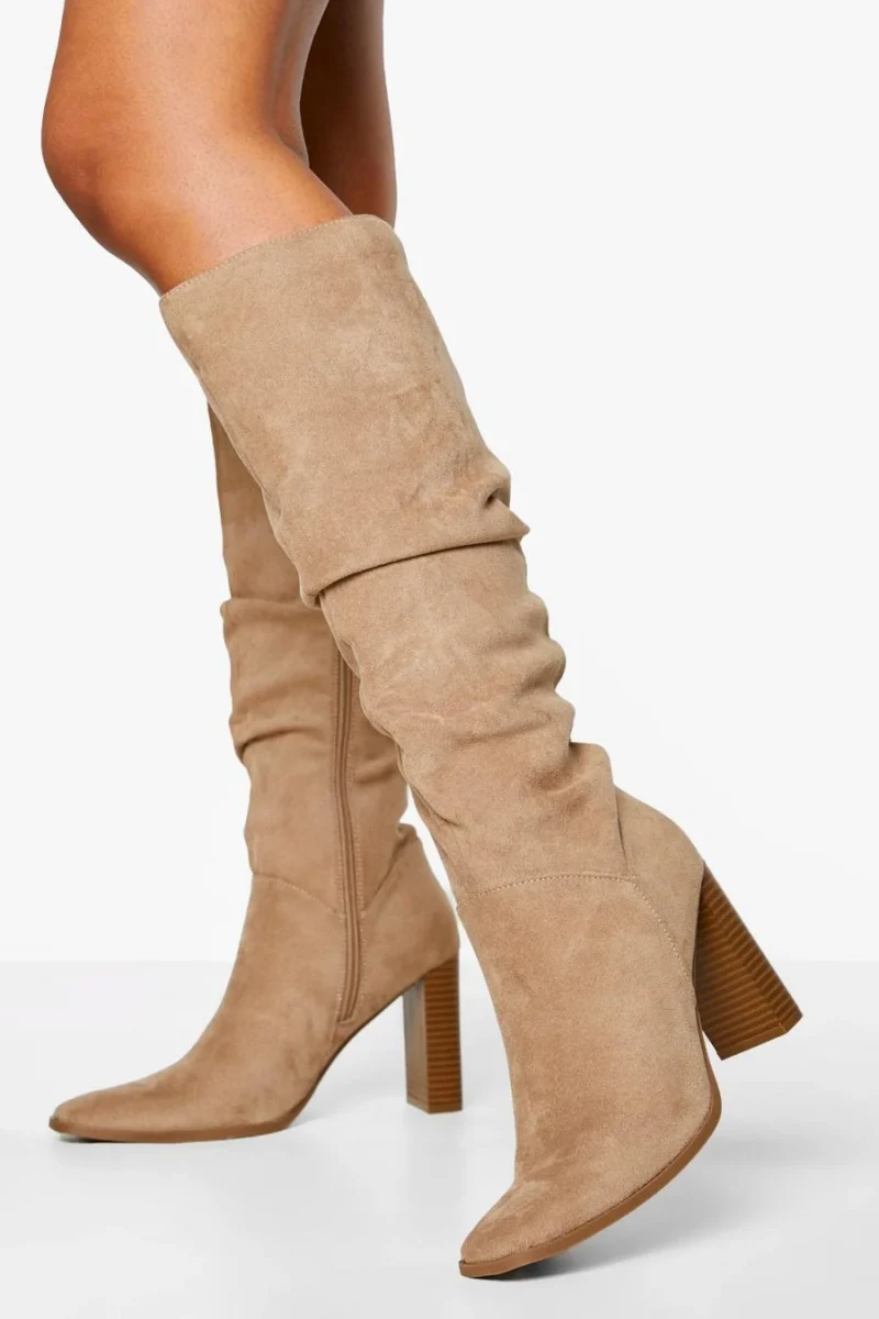 BOOHOO Faux Suede Ruched Block Heel Knee High Boot