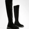 BOOHOO Faux Suede Square Toe Heeled Sock Boots