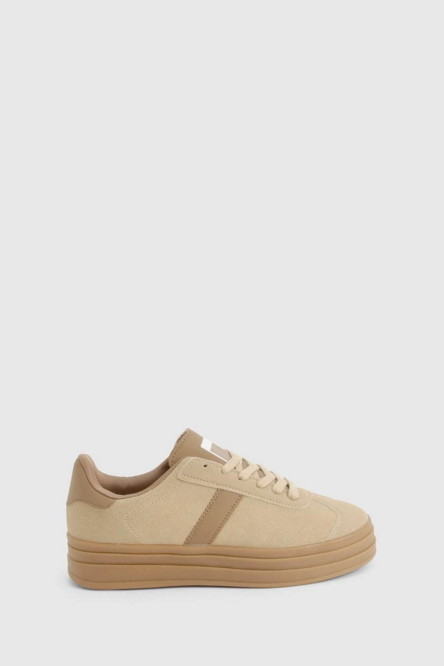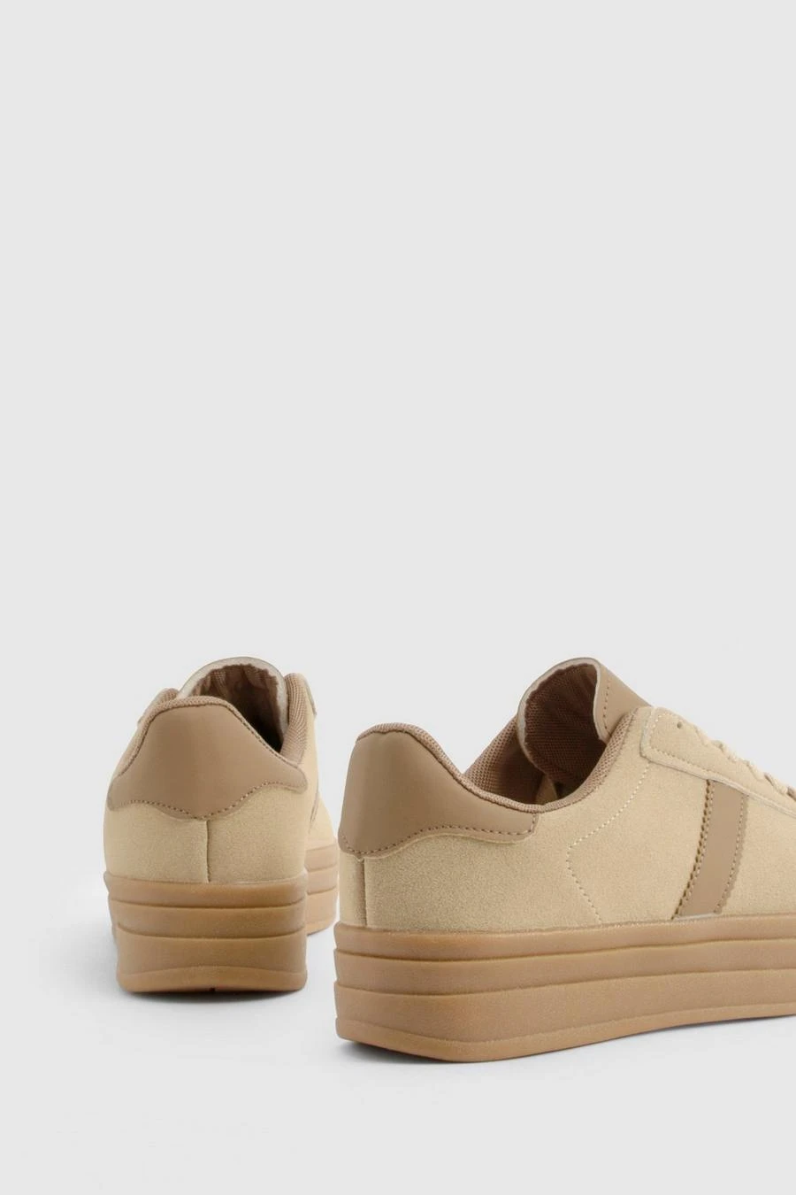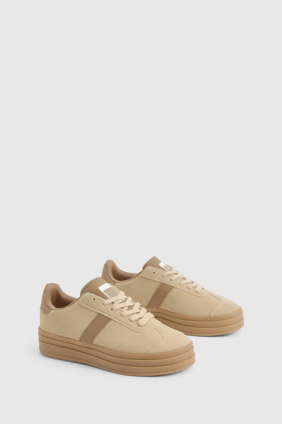 BOOHOO Faux Suede Stripe Gum Sole Trainers