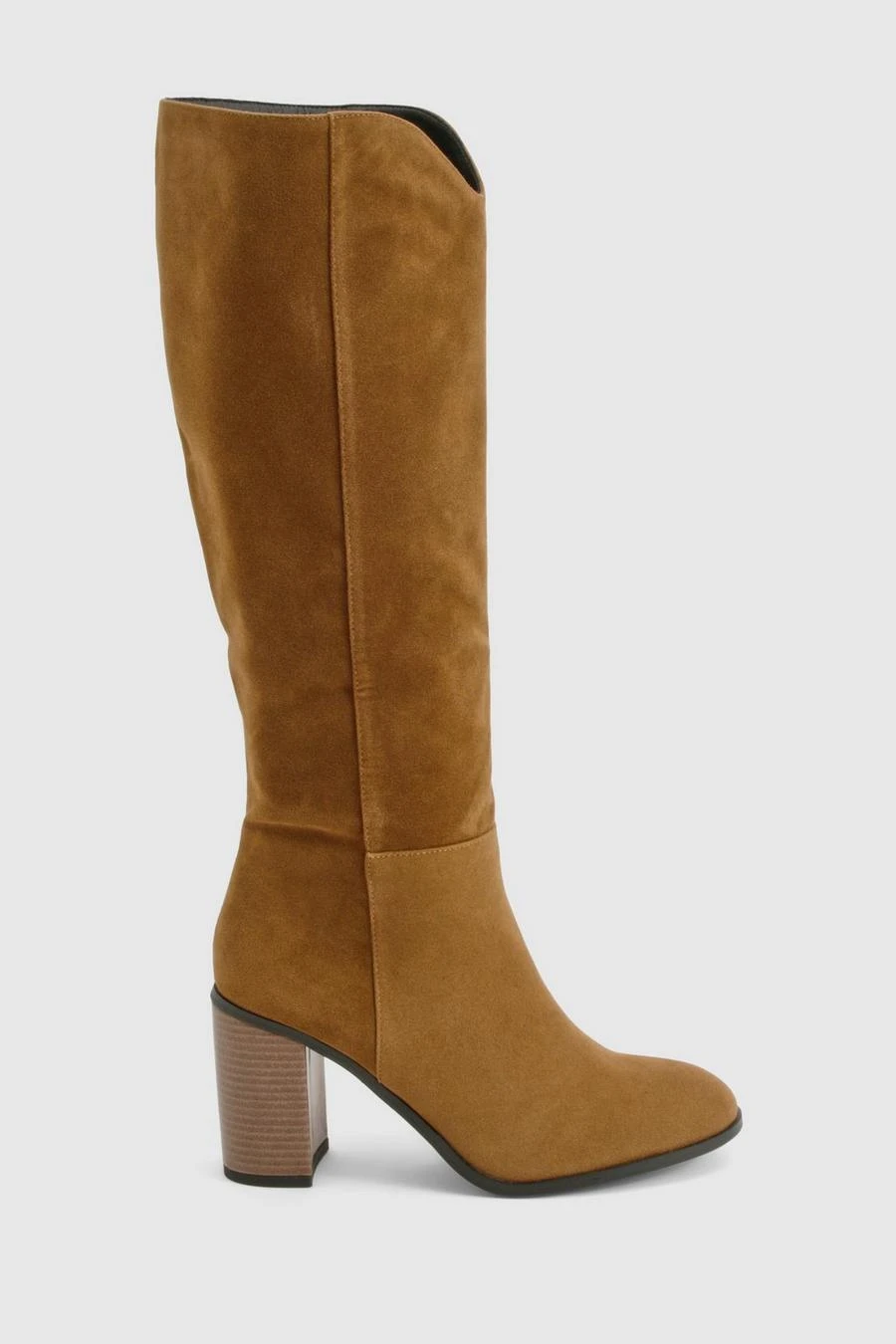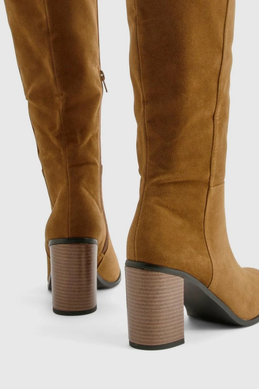 BOOHOO Faux Suede Wooden Stack Heel Detail Knee High Boot