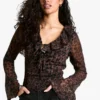 BOOHOO Floral Chiffon Flare Sleeve Wrap Blouse