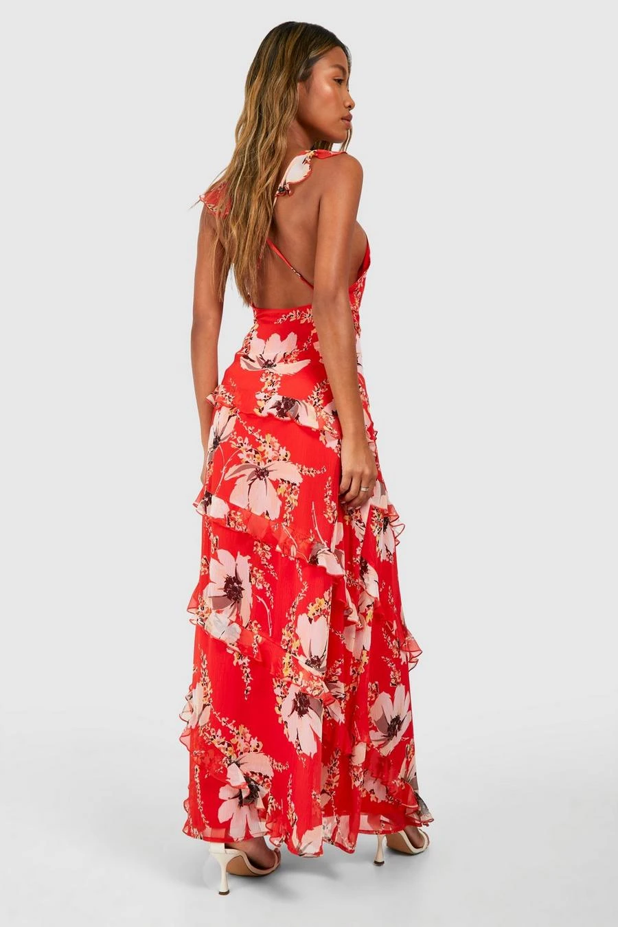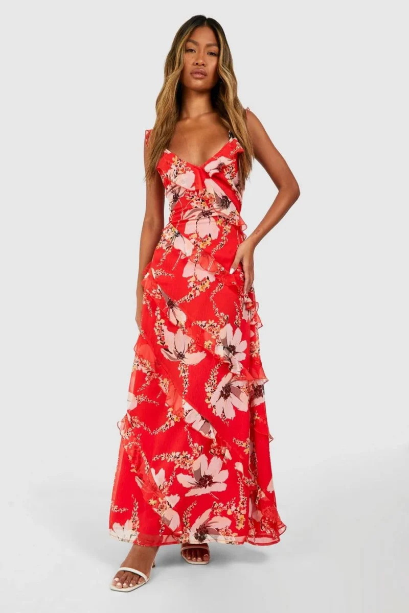 BOOHOO Floral Chiffon Ruffle Maxi Dress