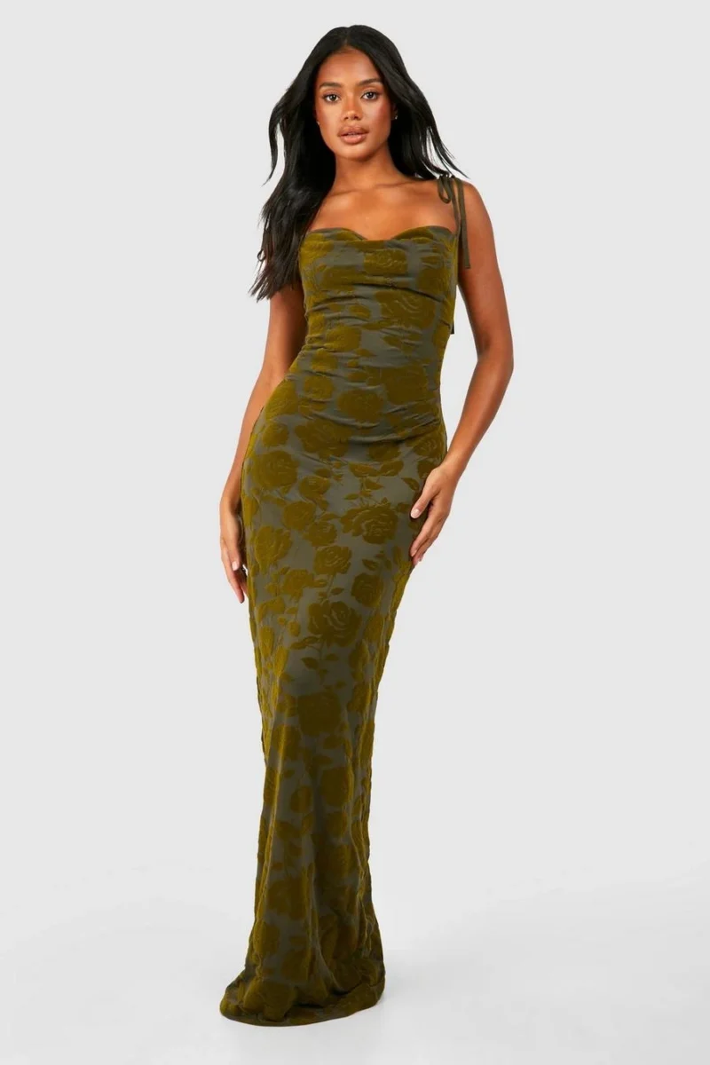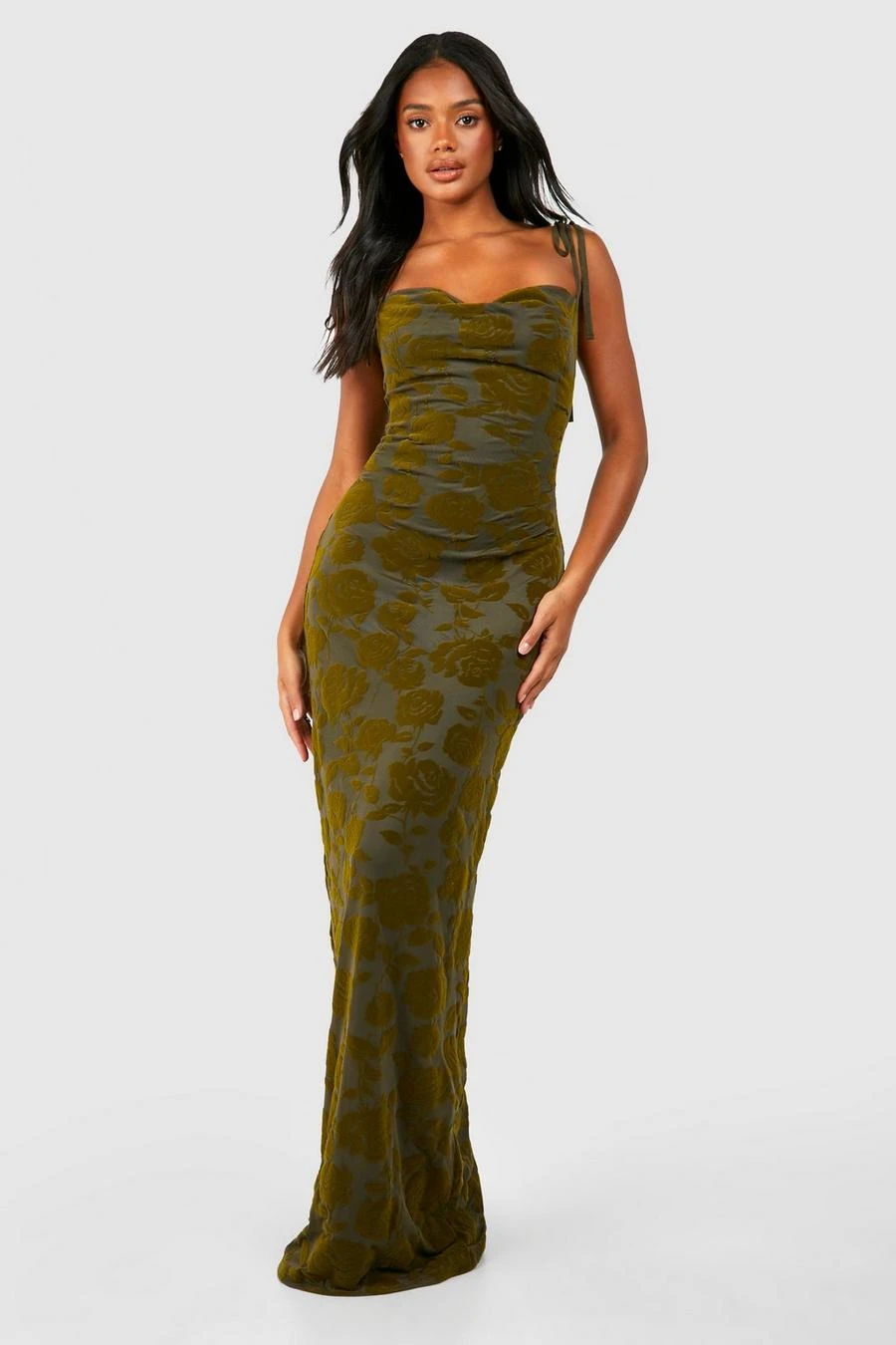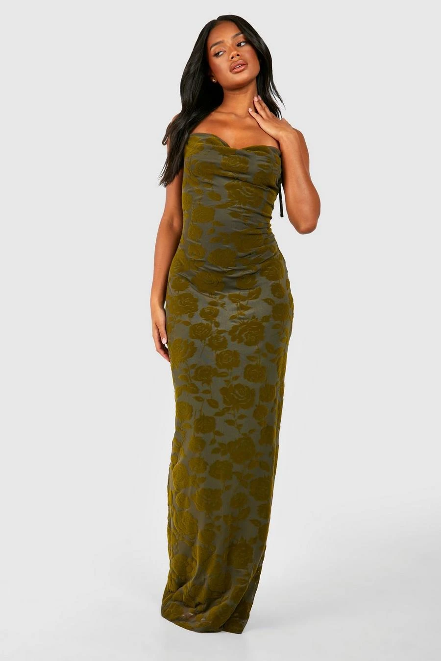 BOOHOO Floral Devore Cowl Maxi Slip Dress