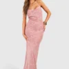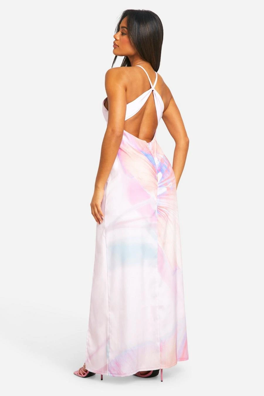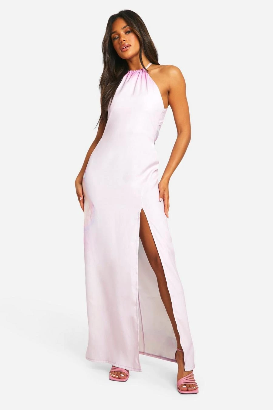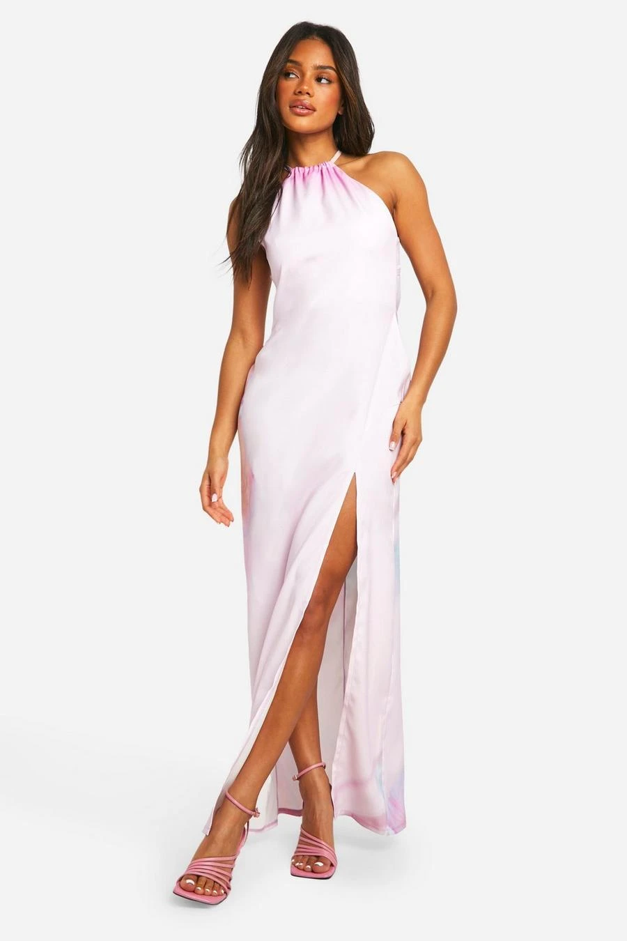 BOOHOO Floral Halter Split Leg Maxi Dress