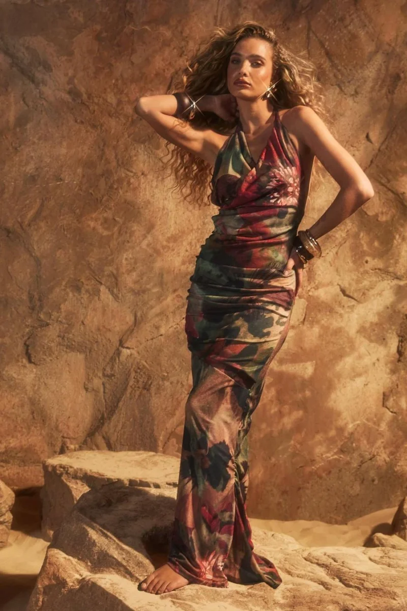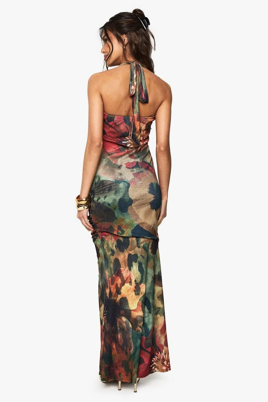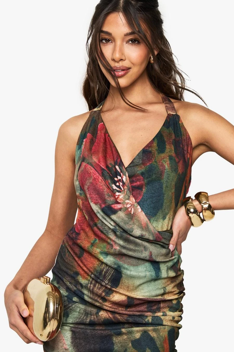 BOOHOO Floral Halterneck Cowl Maxi Dress